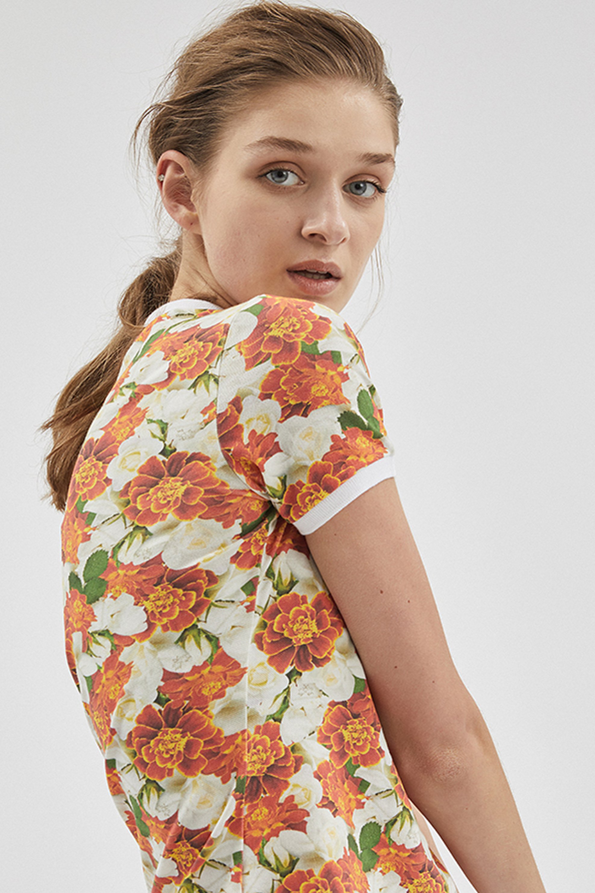Μπλούζα polo φλοράλ. Κοντό μανίκι. Πατιλέτα τρίκουμπη. 95% βαμβάκι, 5% elastane