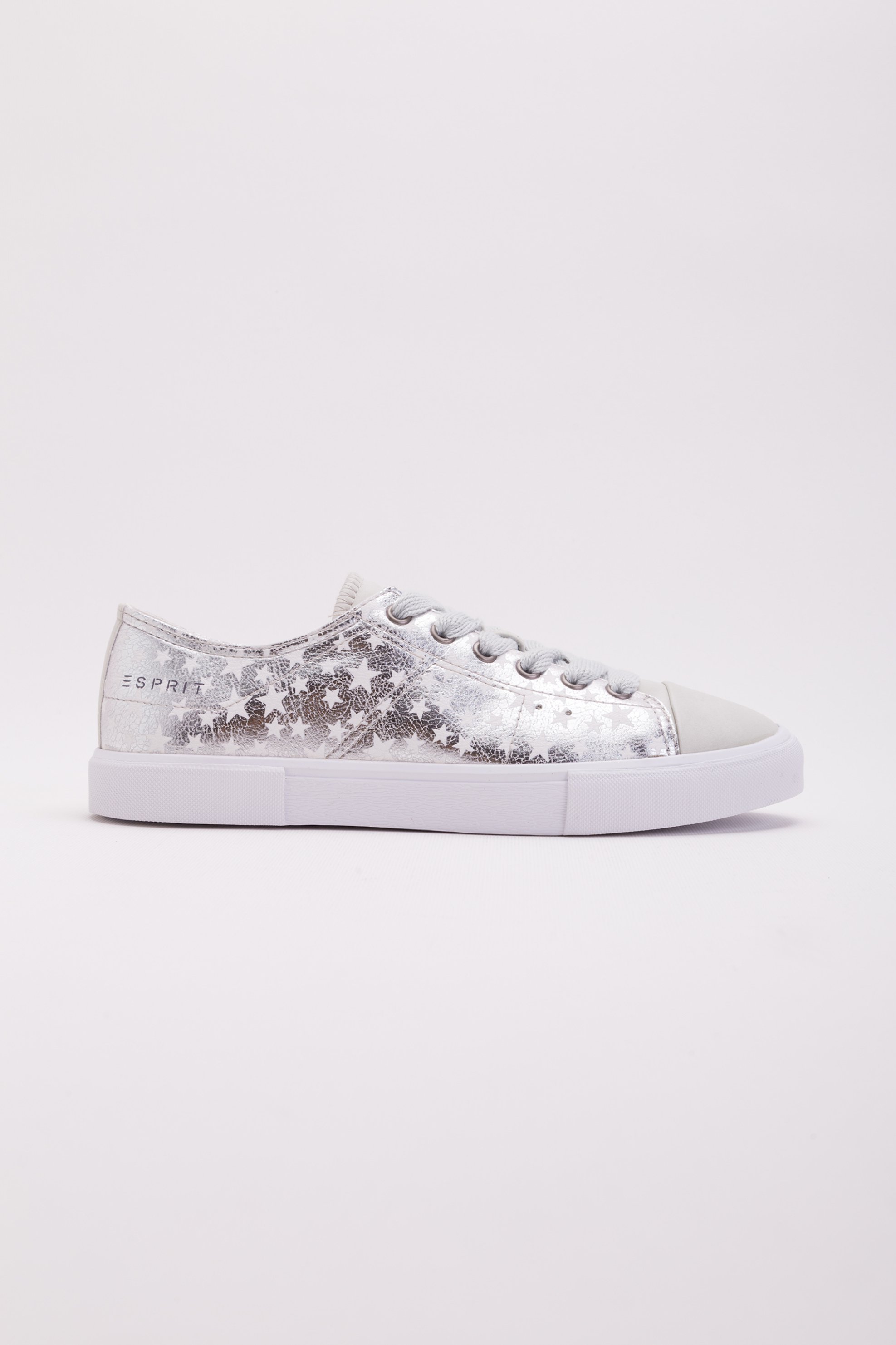 Γυναικεία sneakers με κορδόνια. Μεταλλιζέ,με print αστέρια. 100% συνθετικό υλικό.