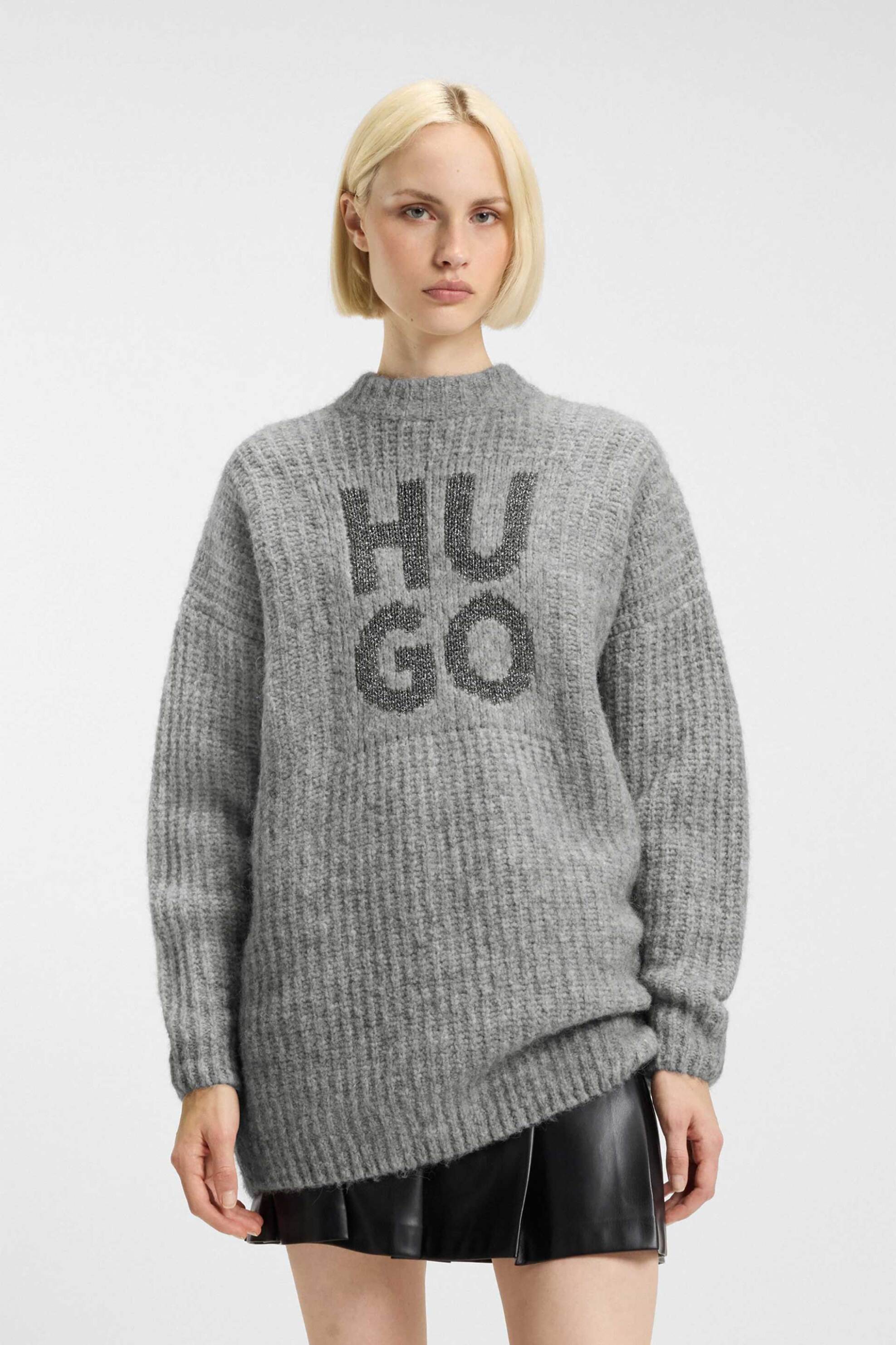 Γυναικεία πλεκτή μπλούζα. Κλειστή λαιμόκοψη. Μακρύ μανίκι. Λογότυπο μπροστά. Oversize fit. 38% μαλλί, 30% polyacrylic, 18% alpaca, 13% polyamid, 1% elastane Το μοντέλο έχει ύψος 180 cm και φοράει νούμερο S. HUGO BOSS HELLAS ΕΠΕ