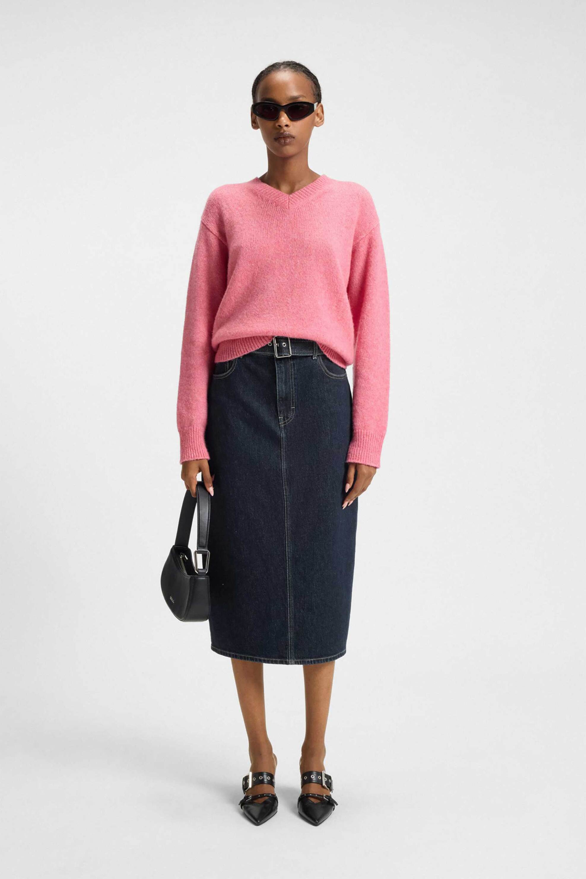 Γυναικεία τζιν φούστα. Ψηλόμεση. Ζώνη στη μέση. Πεντάτσεπη. Regular fit. Midi. 99% βαμβάκι, 1% elastane Το μοντέλο έχει ύψος 175 cm και φοράει νούμερο S. HUGO BOSS HELLAS ΕΠΕ