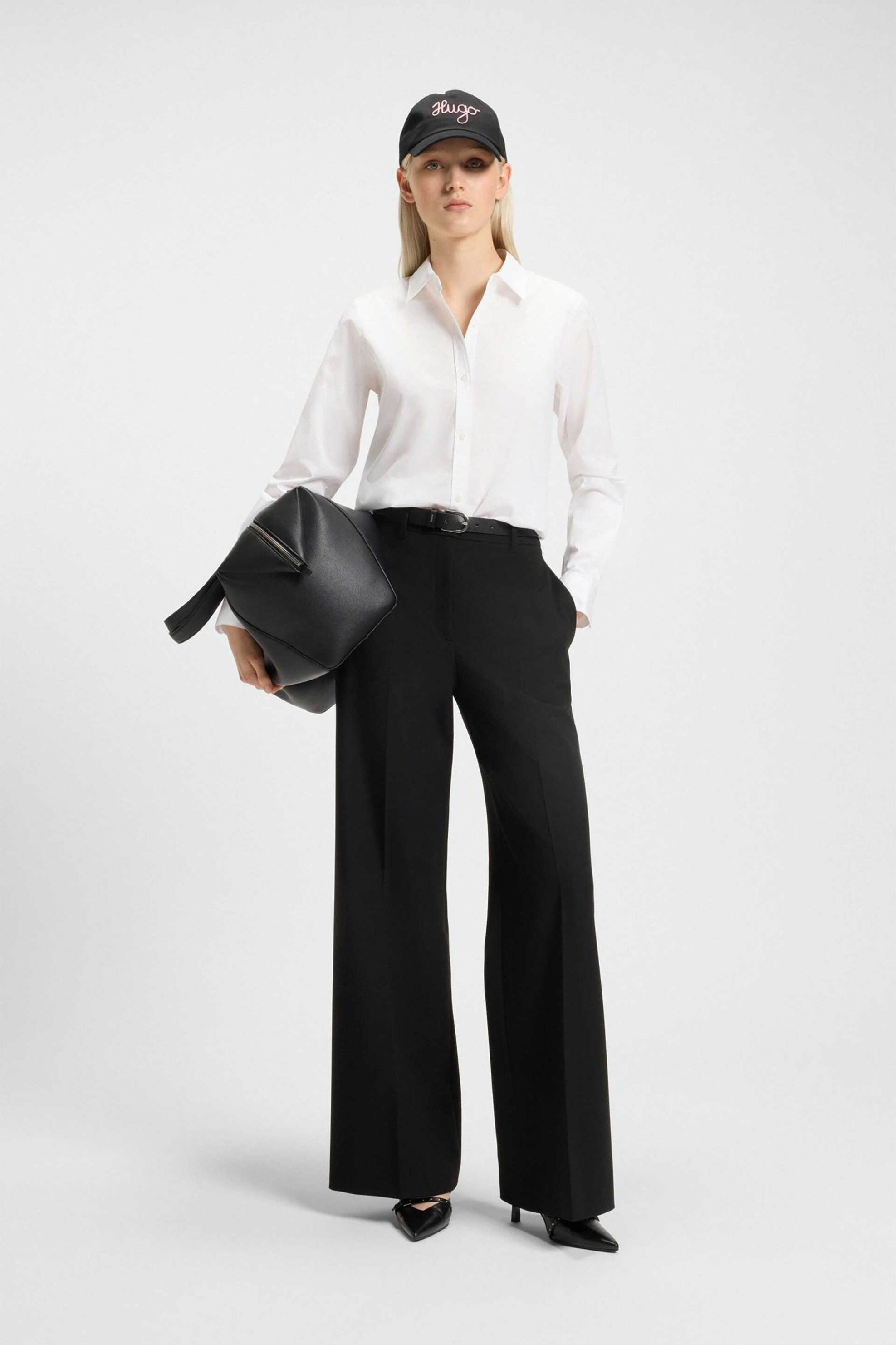 Γυναικείο παντελόνι. Μονόχρωμο. Κλείσιμο με φερμουάρ και γάντζο. Ψηλόμεσο. Τσέπες στο μπροστινό και πίσω μέρος. Flared leg. Regular fit. 64% polyester, 31% βισκόζη, 5% elastane Το μοντέλο έχει ύψος 180 cm και φοράει νούμερο 36. HUGO BOSS HELLAS ΕΠΕ