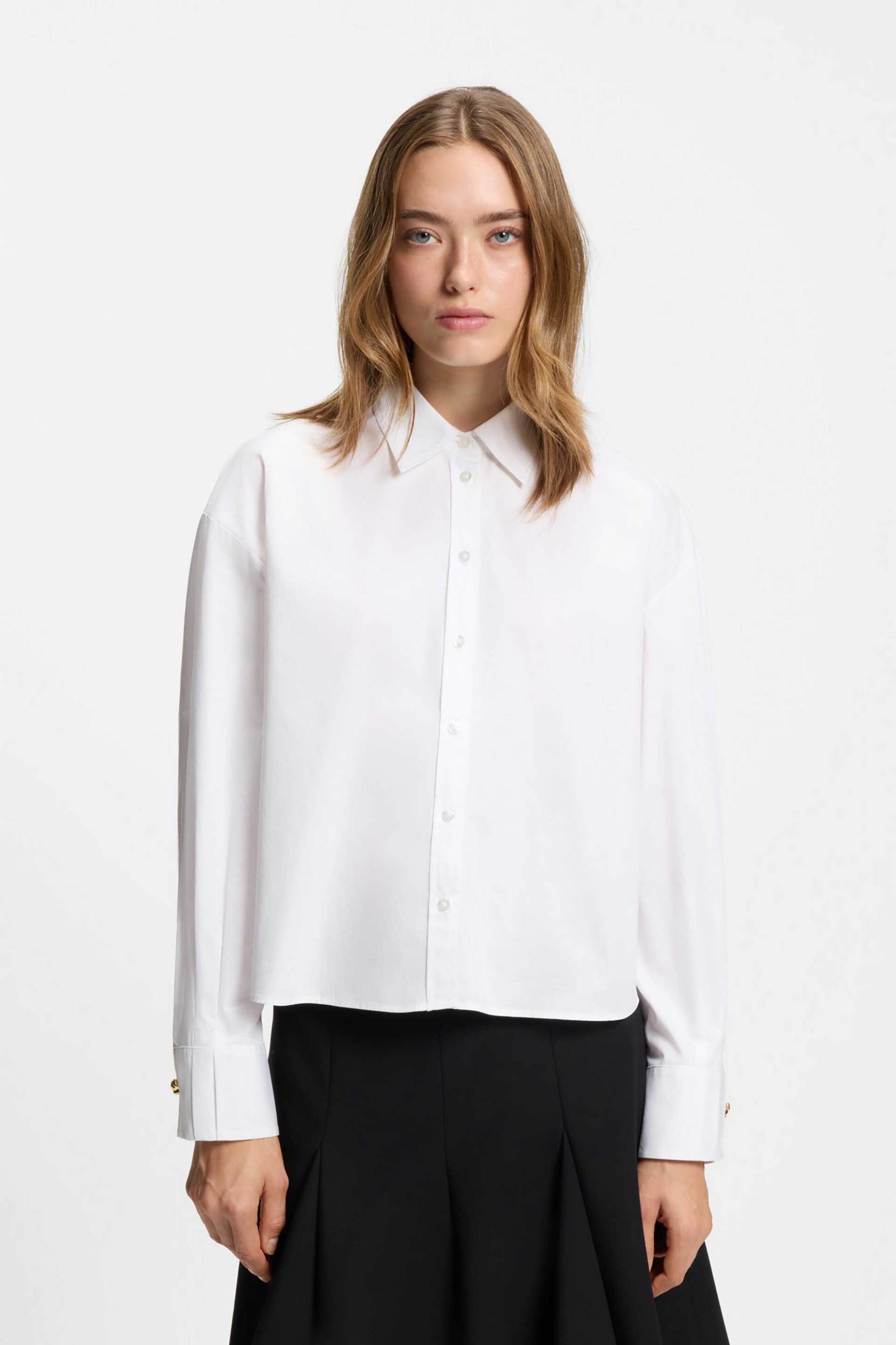 Γυναικείο πουκάμισο. Μονόχρωμο. Μακρύ μανίκι. Κλείσιμο με κουμπιά. 100% βαμβάκι Το μοντέλο έχει ύψος 175 cm και φοράει νούμερο 36. HUGO BOSS HELLAS ΕΠΕ