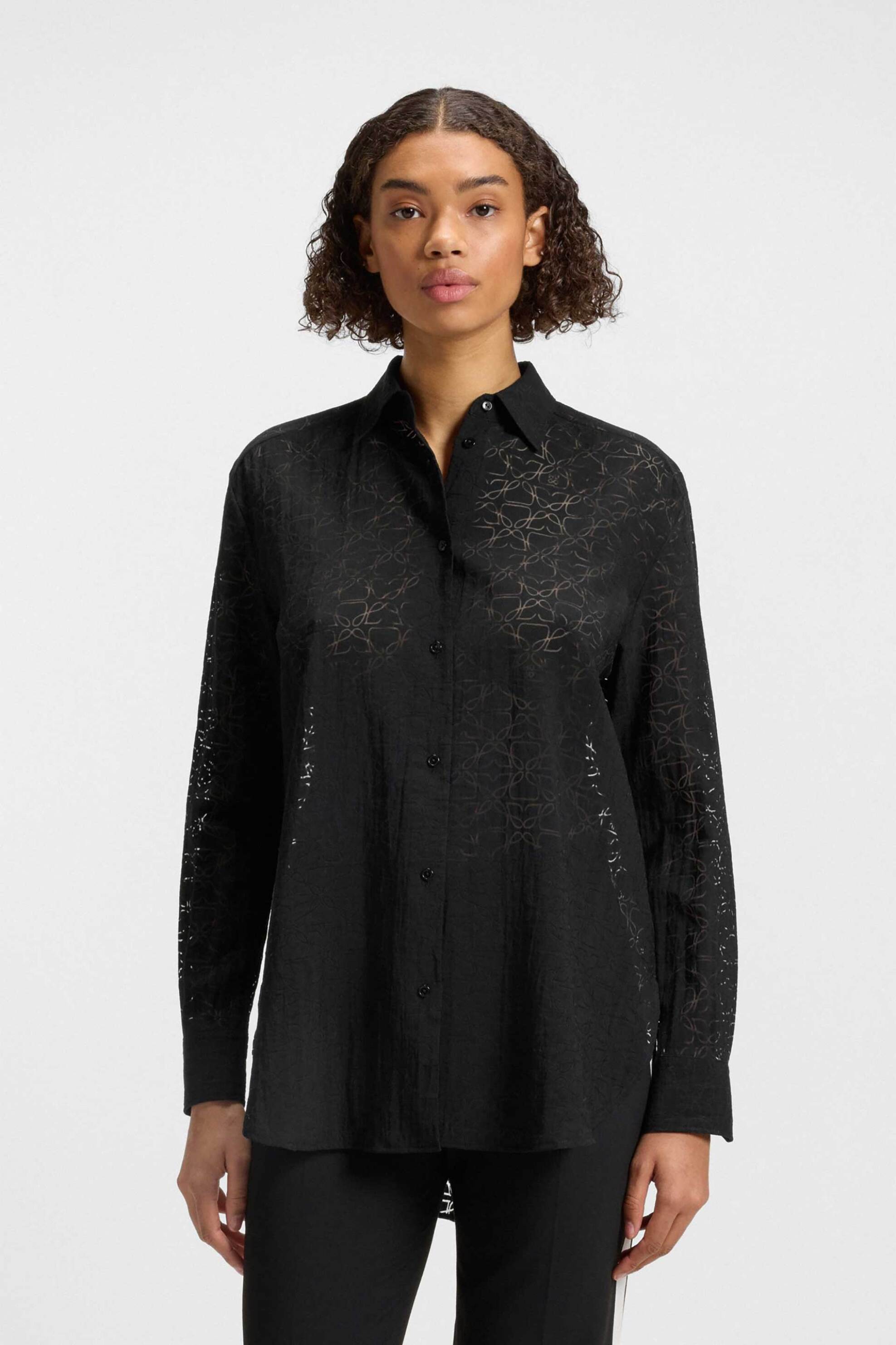 Γυναικείο πουκάμισο. Ημιδιάφανο. Burnout patterns. Κλείσιμο με κουμπιά. Oversize fit. 81% βισκόζη, 19% polyamide Το μοντέλο έχει ύψος 179 cm και φοράει νούμερο S. HUGO BOSS HELLAS ΕΠΕ
