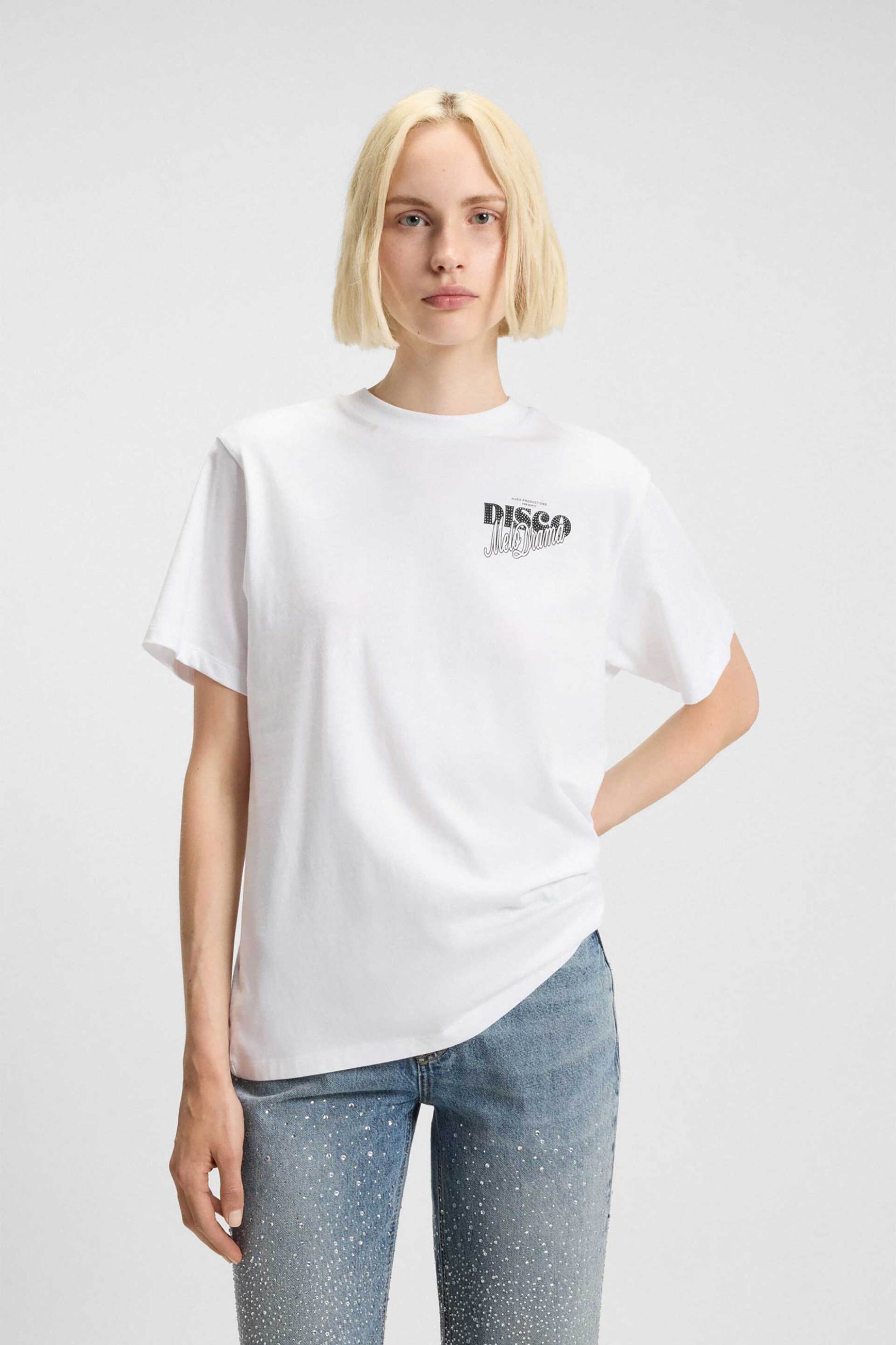 Γυναικείο T-shirt. Μονόχρωμο. Στρογγυλή λαιμόκοψη. Στρας διακοσμητικά. Relaxed fit. 100% βαμβάκι HUGO BOSS HELLAS ΕΠΕ