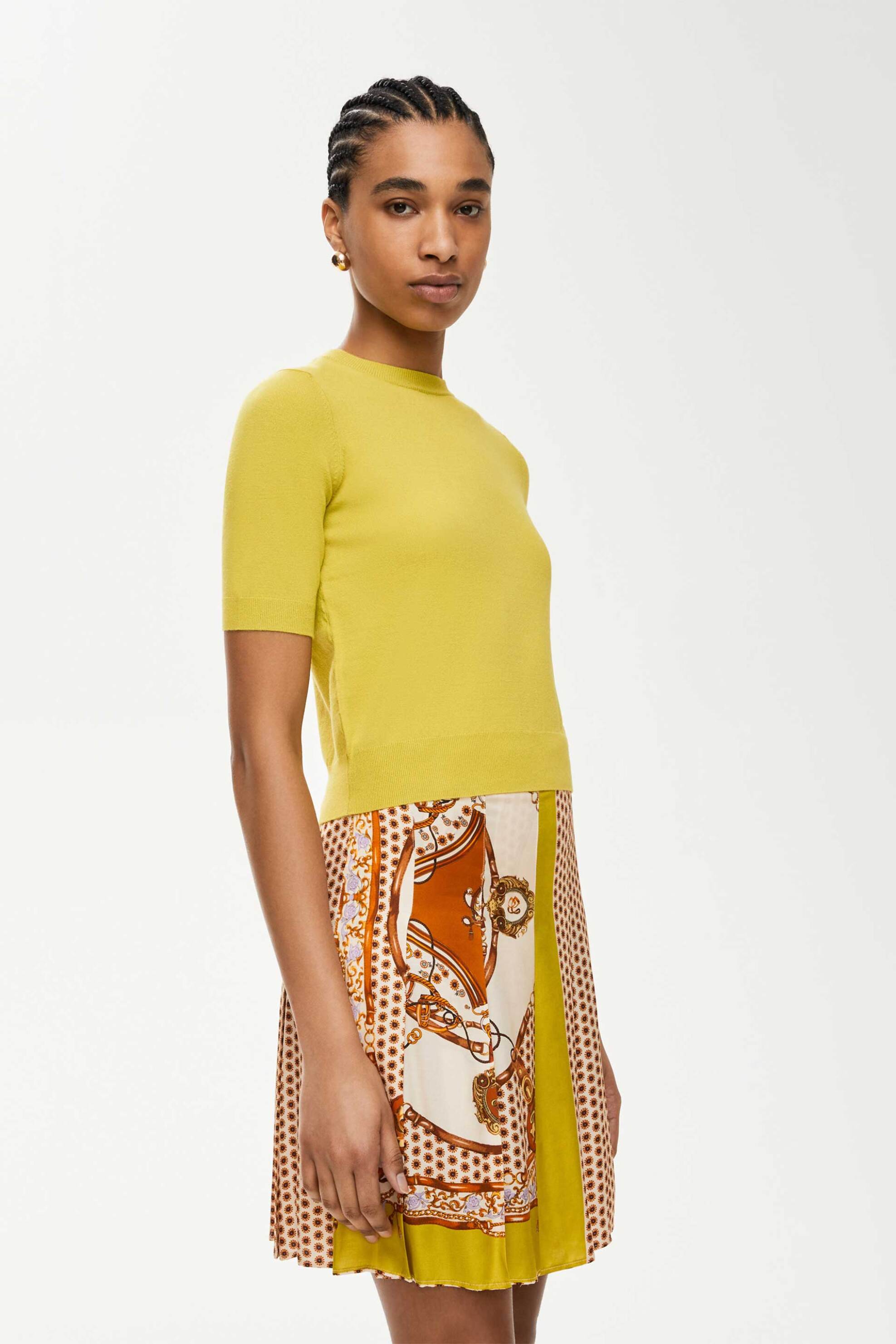 Γυναικεία πλεκτή μπλούζα. Μονόχρωμη. Κοντό μανίκι. Στρογγυλή λαιμόκοψη. Regular fit. Προέλευση: TR. 72% βισκόζη, 28% polyester DEDIMAX SRLU