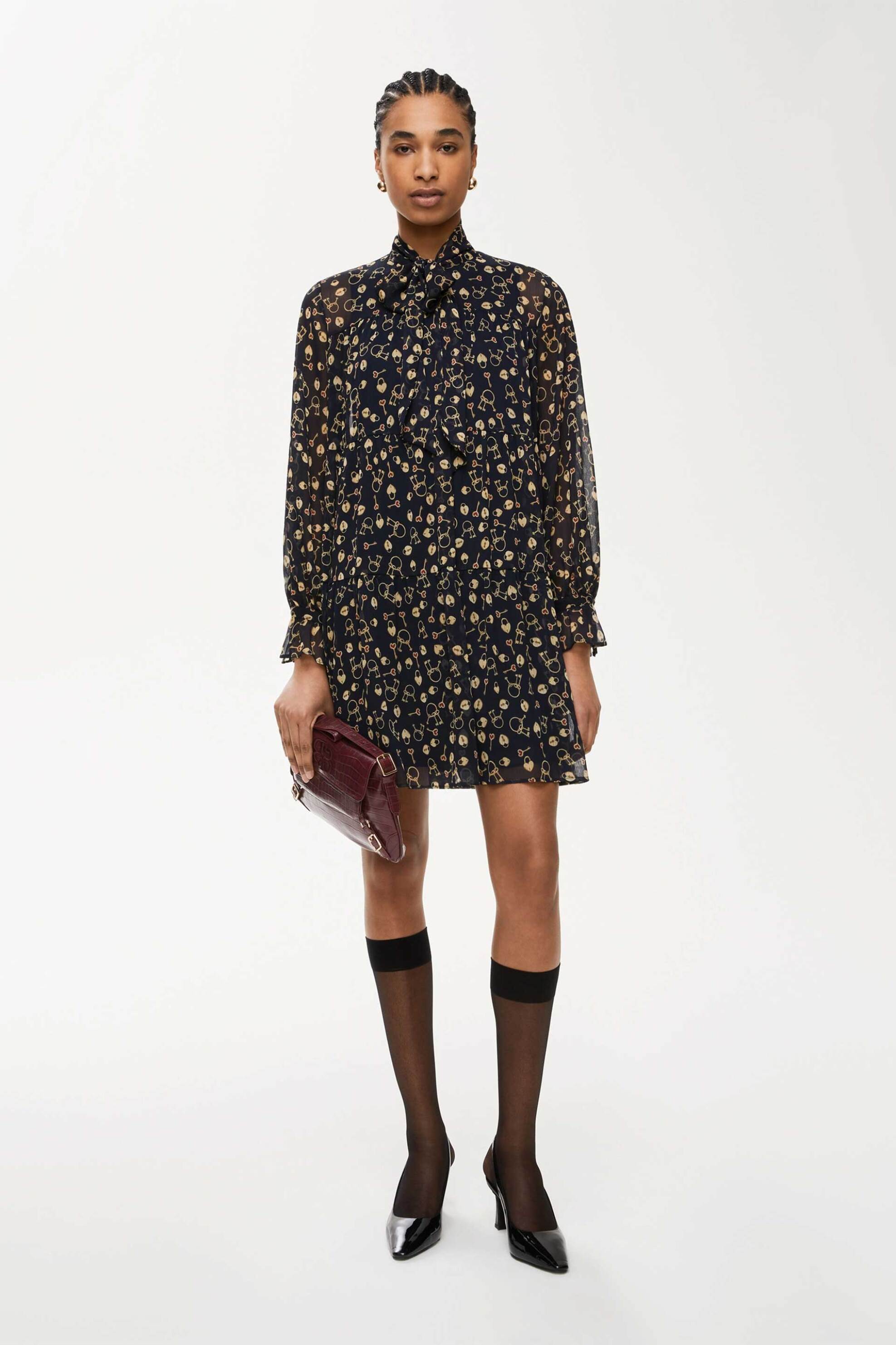 Γυναικείο mini φόρεμα. Κλειστή λαιμόκοψη. Μακρύ μανίκι. Εμπριμέ print. Loose fit. Προέλευση: IT. 100% polyester DEDIMAX SRLU