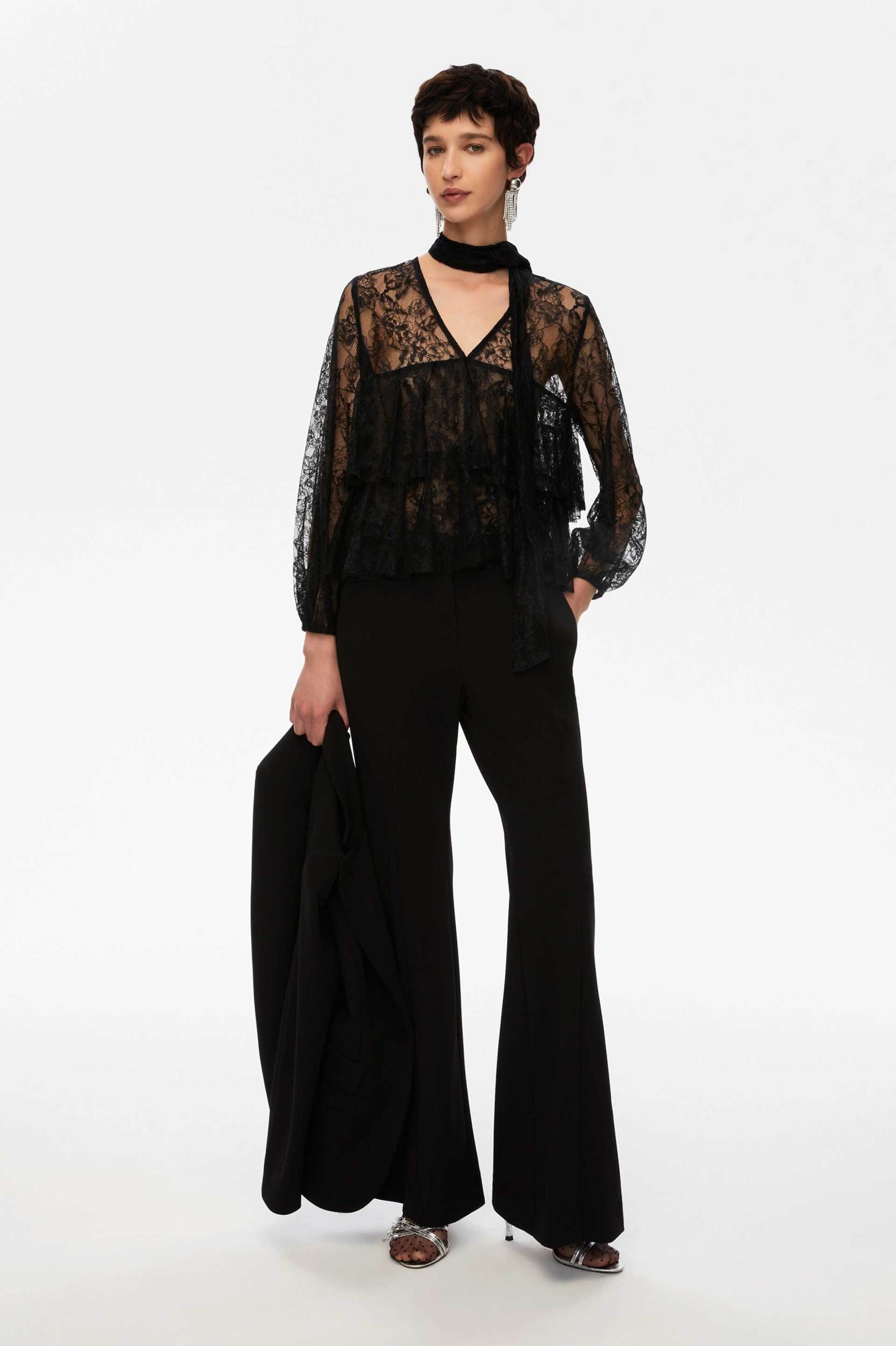 Γυναικείο παντελόνι. Κλείσιμο με φερμουάρ και γάντζο. Τσέπες στο πλάι. Ψηλόμεσο. Flared fit. Προέλευση: AL. 96% polyester, 4% elastane DEDIMAX SRLU