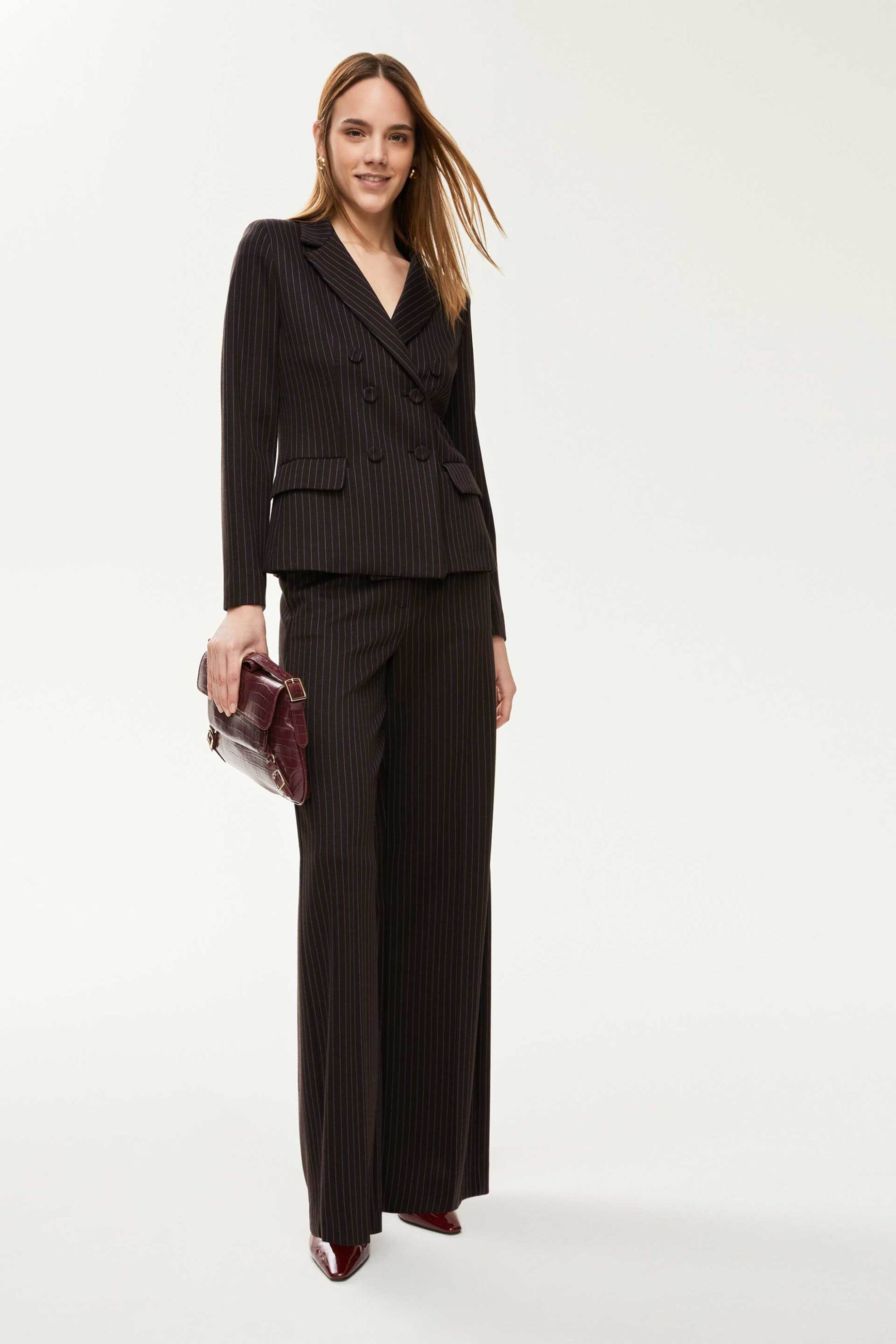 Γυναικείο παντελόνι. Ψηλόμεσο. Κλείσιμο με φερμουάρ και γάντζο. Σχέδιο με ρίγα. Loose fit. Προέλευση: AL. 82% βισκόζη, 15% polyester, 3% elastane DEDIMAX SRLU