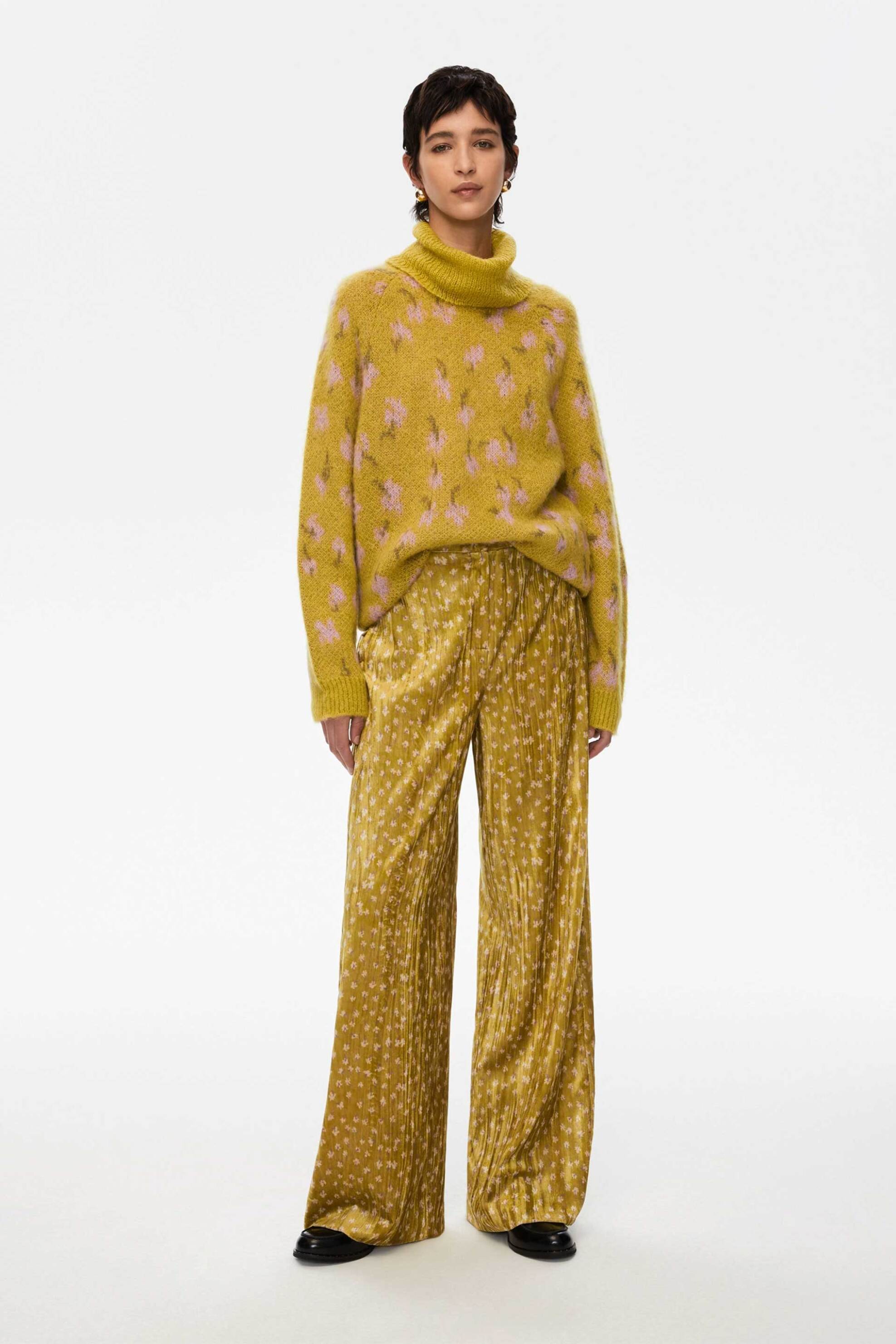 Γυναικείο παντελόνι. Ελαστική μέση με φερμουάρ και γάντζο. Τσέπες στο πλάι. Velvet. Εμπριμέ print. Ψηλόμεσο. Loose fit. Προέλευση: AL. 100% polyester DEDIMAX SRLU