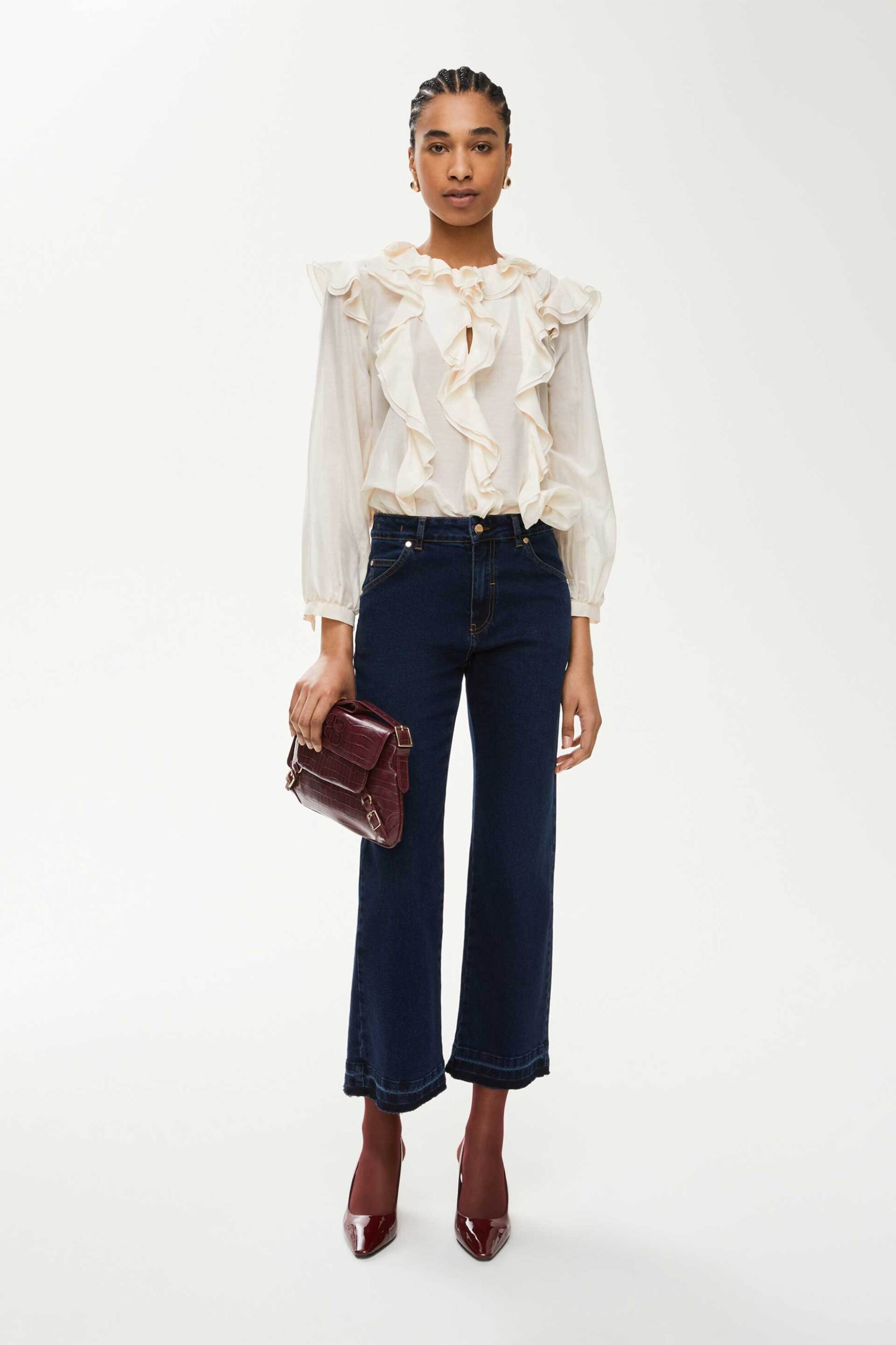 Γυναικείο τζιν παντελόνι. Kλείσιμο με φερμουάρ και κουμπί. Πεντάτσεπο. Flared fit. Προέλευση: TN. 99% βαμβάκι, 1% elastane DEDIMAX SRLU