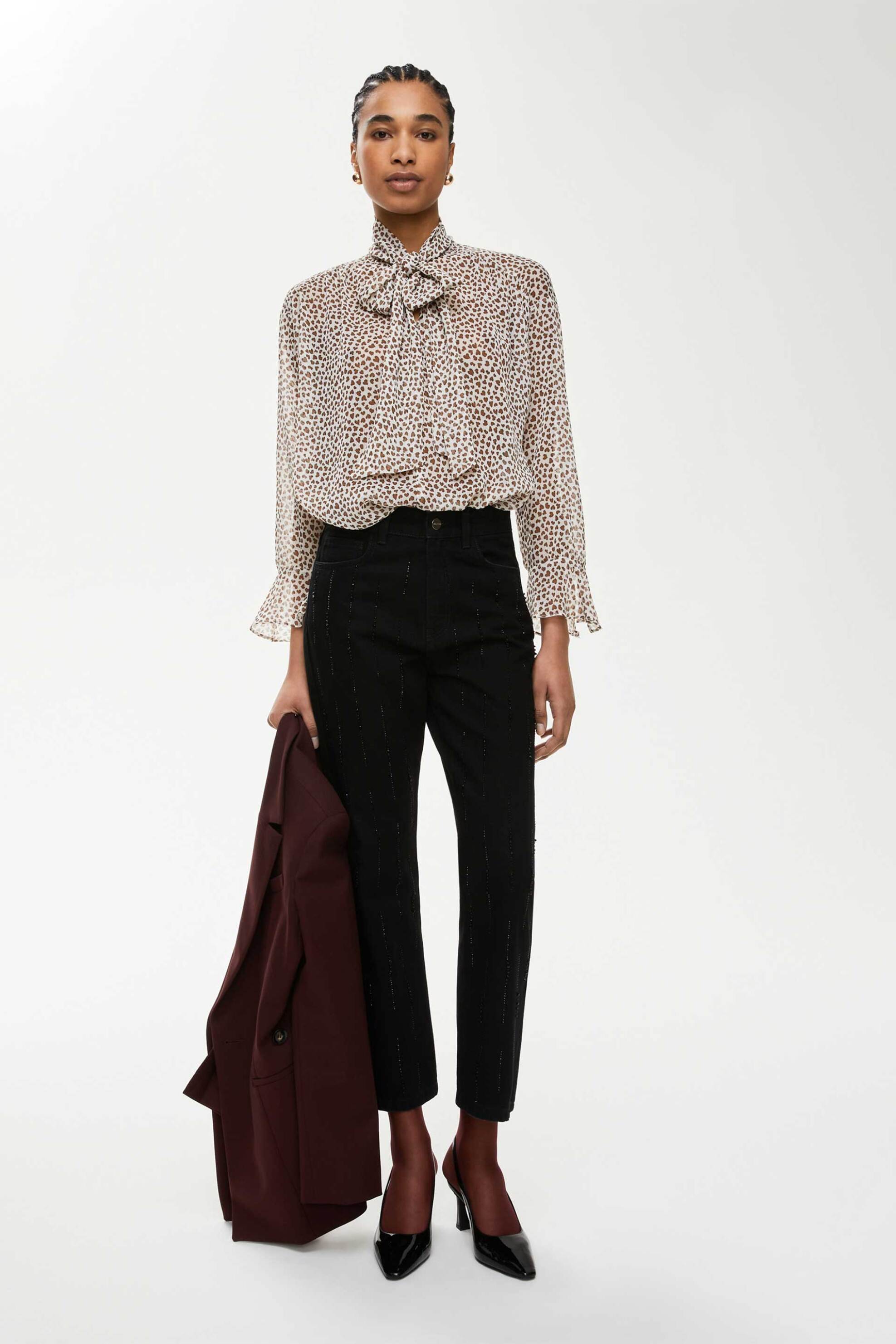 Γυναικείο τζιν παντελόνι. Kλείσιμο με φερμουάρ και κουμπί. Πεντάτσεπο. Σχέδιο με στρας. Cropped. Straight fit. Regular fit. Προέλευση: TR. 100% βαμβάκι DEDIMAX SRLU