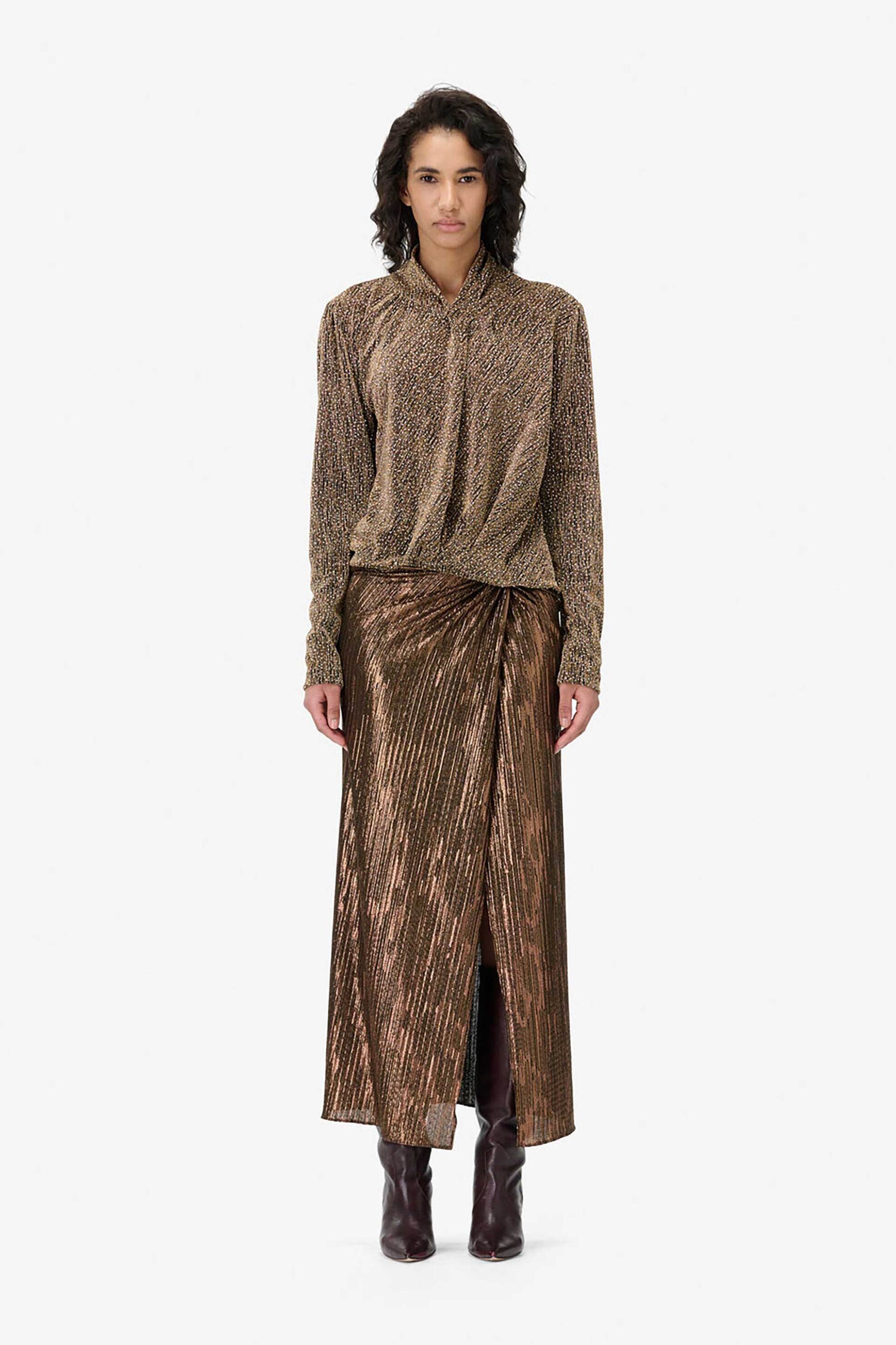 Γυναικεία μπλούζα. Μακρύ μανίκι. Στρογγυλή λαιμόκοψη. Αόρατο κλείσιμο με φερμουάρ. Προέλευση: CN. 52% polyester 42% metalic polyester, 6% elastane S.A.S.IRO