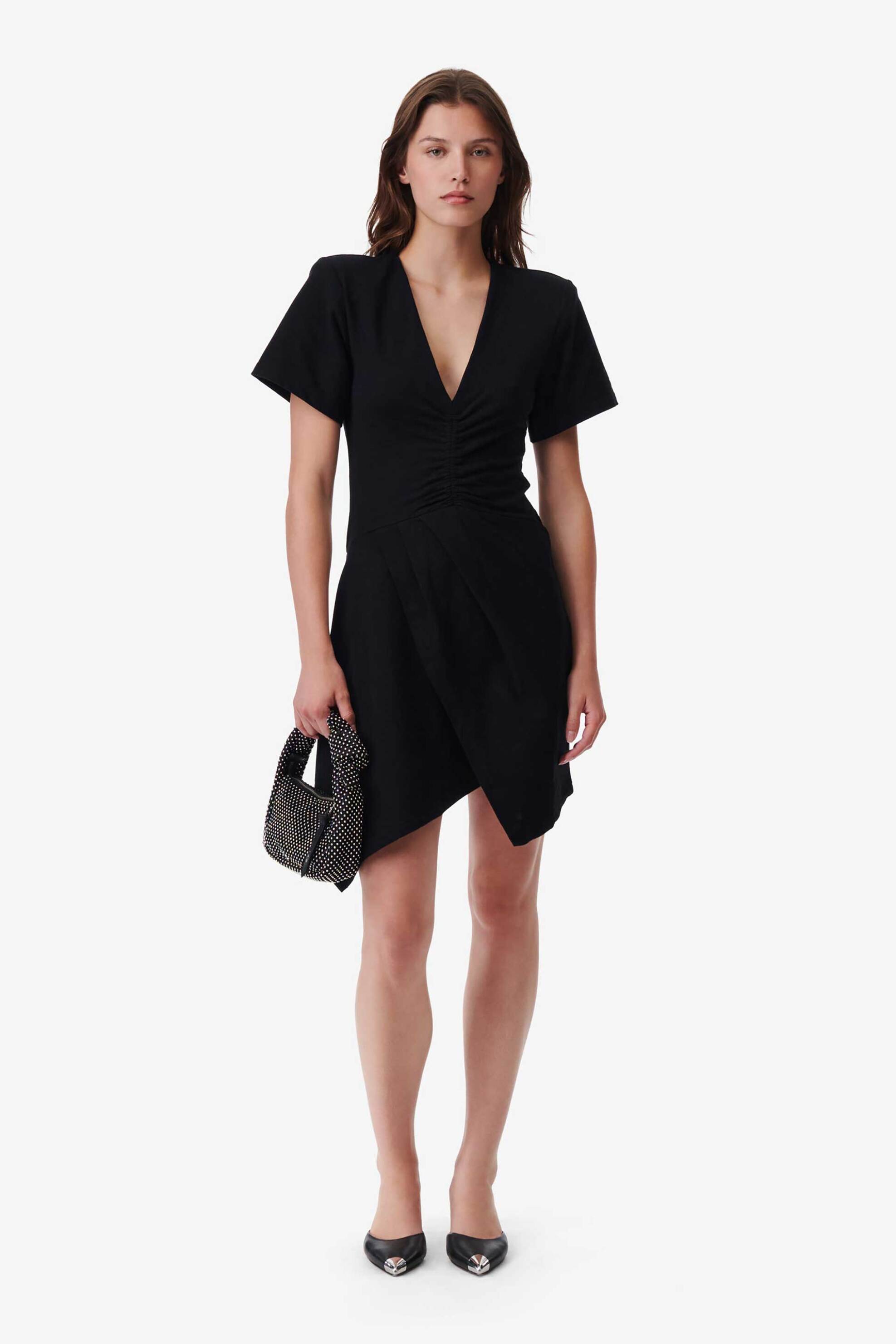 Γυναικείο mini φόρεμα. V β COLORS CODES αθύ ντεκολτέ. Ασύμμετρο κάτω μέρος. Κοντό μανίκι. Κλείνει πίσω με φερμουάρ. 98% βαμβάκι, 2% elastane