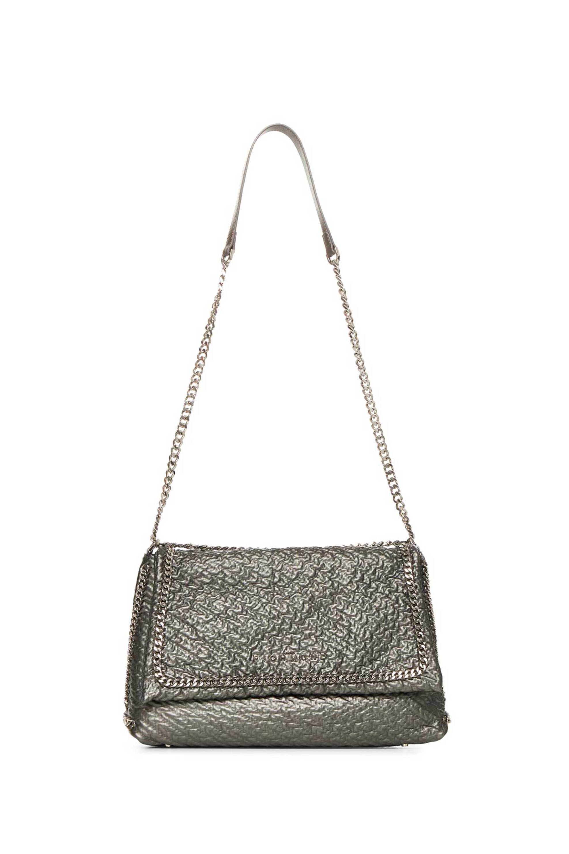 Γυναικεία τσάντα ώμου. Μεταλλικό λογότυπο. Flap κλείσιμο. Αλυσίδα ώμου. Εσωτερική τσέπη με φερμουάρ. Προέλευση: Ιταλία. 100% polyurethane POINT F. GROUP Α.Ε.