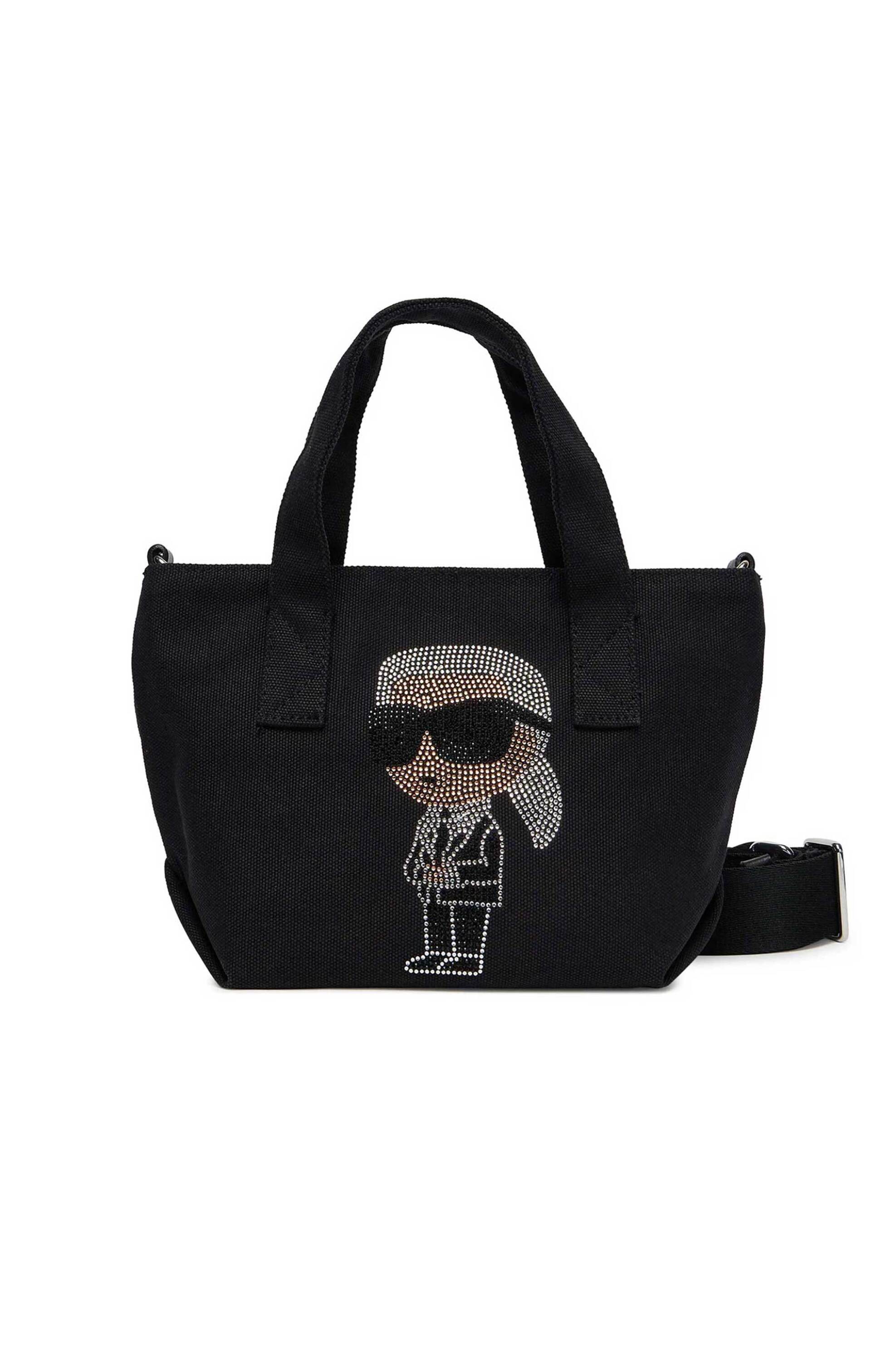 Γυναικεία τσάντα shopper. Λογότυπο. Icon logo με στρας. Κλείσιμο με μαγνητικό κούμπωμα. Διπλή λαβή. Αποσπώμενος και ρυθμιζόμενος ιμάντας ώμου. Διαστάσεις: 28 x 18 x 9 cm. Προέλευση: Κίνα. 100% βαμβάκι SPORT & FASHION FREEDOM A.E.