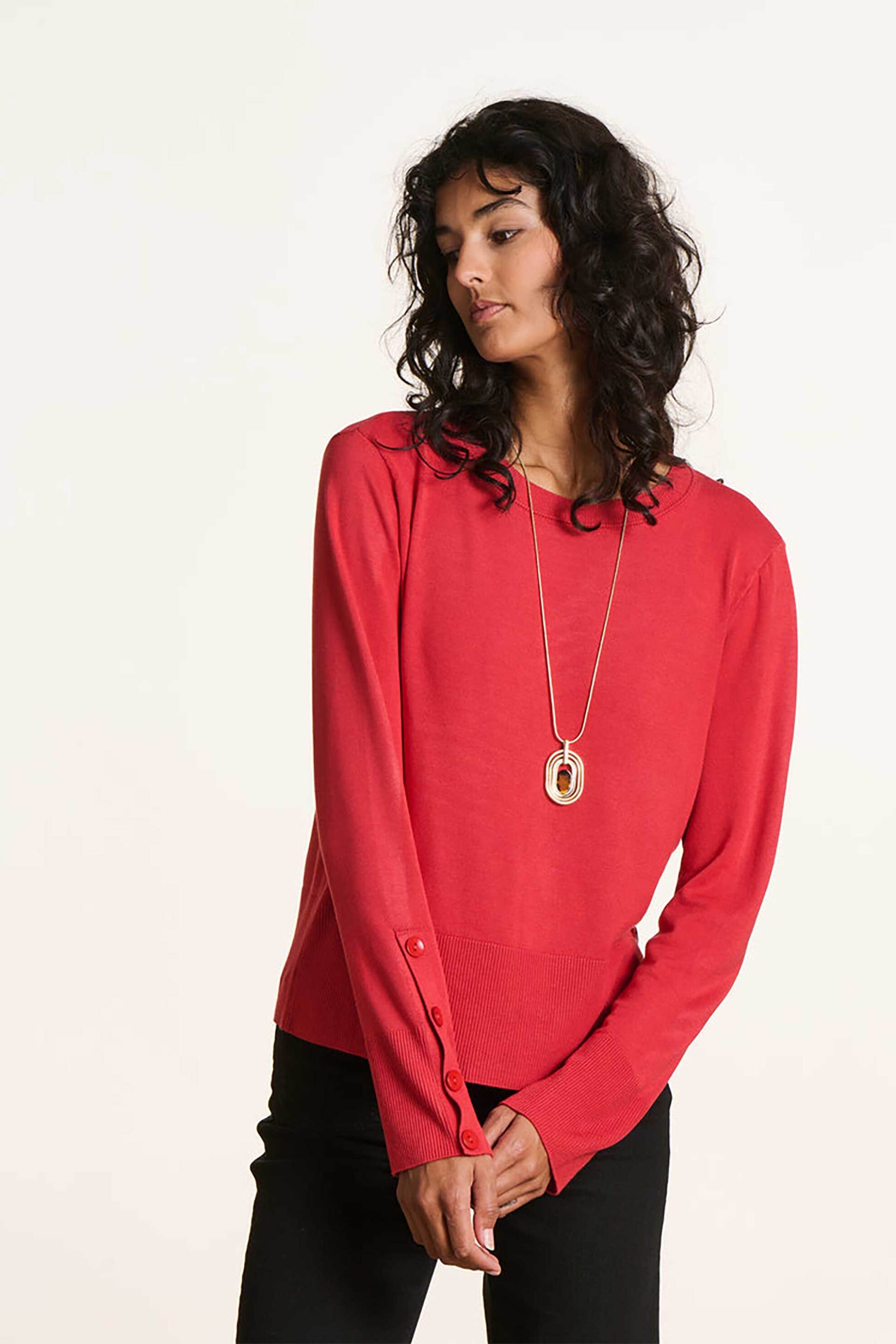 Γυναικείο πουλόβερ. Μονόχρωμο. Στρογγυλή λαιμόκοψη. Μακρύ μανίκι. Κουμπιά στο πλάι. Προέλευση: TR. 90% βισκόζη, 10%polyamide S.A.S. U LA FEE
