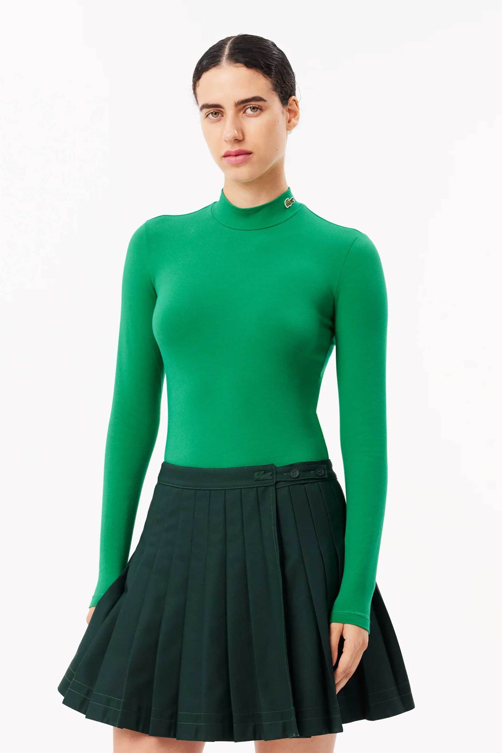 Γυναικεία μπλούζα. Μονόχρωμη. Ψηλός λαιμός με κεντημένο λογότυπο. Μακρύ μανίκι. Slim fit. 93% βαμβάκι, 7% elastane Sustainable: προϊόν που έχει κατασκευαστεί με ίνες ή/και διαδικασίες βιώσιμης παραγωγής, μειώνοντας το περιβαλλοντικό αποτύπωμα.