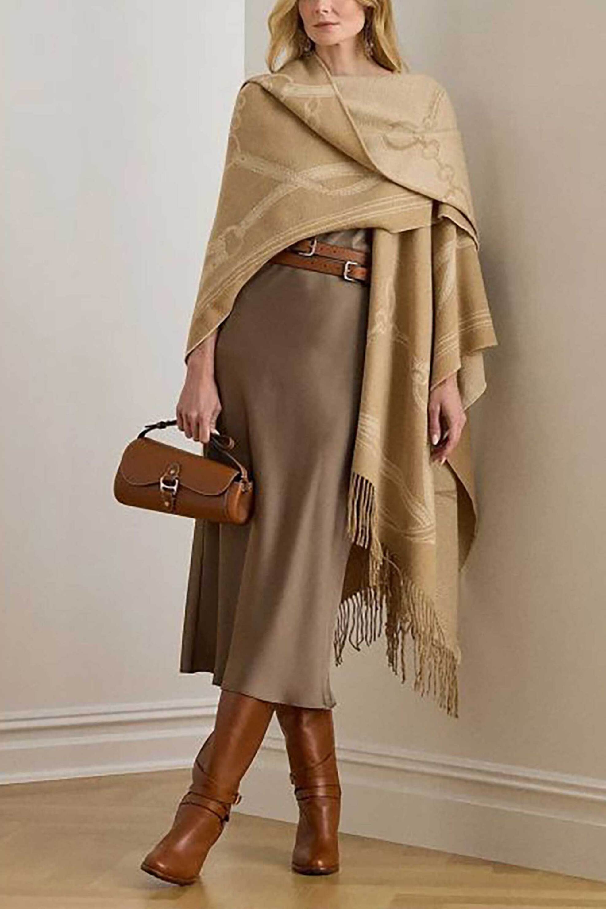 Γυναικεία πλεκτή κάπα. Σχέδιο. Κρόσσια στα τελειώματα. 61% acrylic, 39% μαλλί Για επικοινωνία με τον Υπεύθυνο Διανομέα στην Ελλάδα: NOTOS COM ΣΥΜΜΕΤΟΧΕΣ ΑΕΒΕ , Καλυφτάκη 5, Κηφισιά 14564 https://www.notoscom.gr/