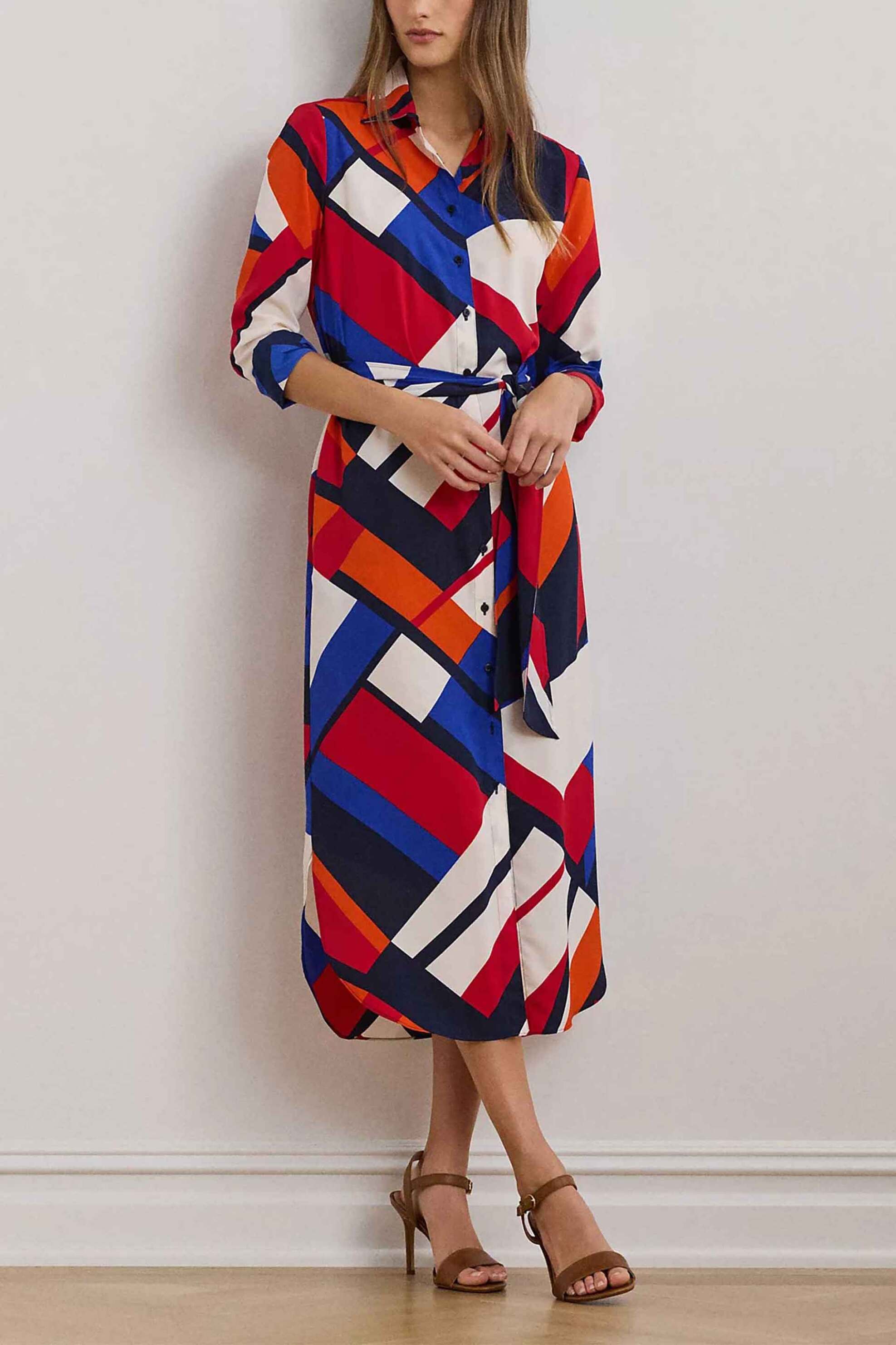 Γυναικείο midi φόρεμα. Σεμιζιέ. All-over print. Μανίκι 3/4. Ζώνη στη μέση. Κλείσιμο με κουμπιά. Προέλευση: Βιετνάμ. 100% recycled polyester Το μοντέλο έχει ύψος 178 cm και φοράει μέγεθος S. Sustainable: προϊόν που έχει κατασκευαστεί με ίνες ή/και διαδικασίες βιώσιμης παραγωγής, μειώνοντας το περιβα...