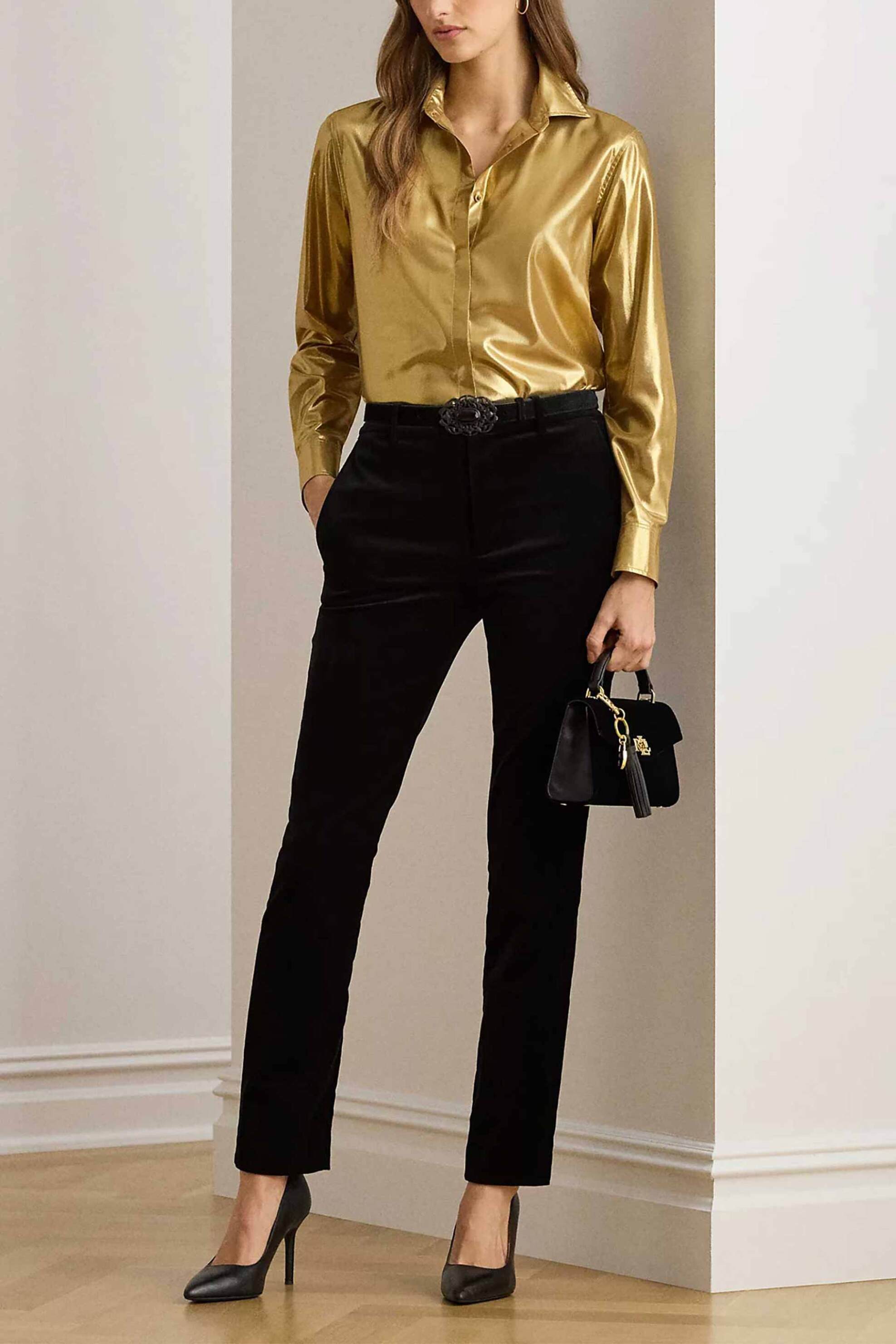 Γυναικείο παντελόνι. Cropped. Μονόχρωμο. Βελούδινη υφή. Κλείσιμο με γάντζο και φερμουάρ. Τσέπες στο πλάι και στο πίσω μέρος. Slim fit. 98% βαμβάκι, 2% elastane Το μοντέλο έχει ύψος 175 cm και φοράει μέγεθος 38. Sustainable: προϊόν που έχει κατασκευαστεί με ίνες ή/και διαδικασίες βιώσιμης παραγωγής,...