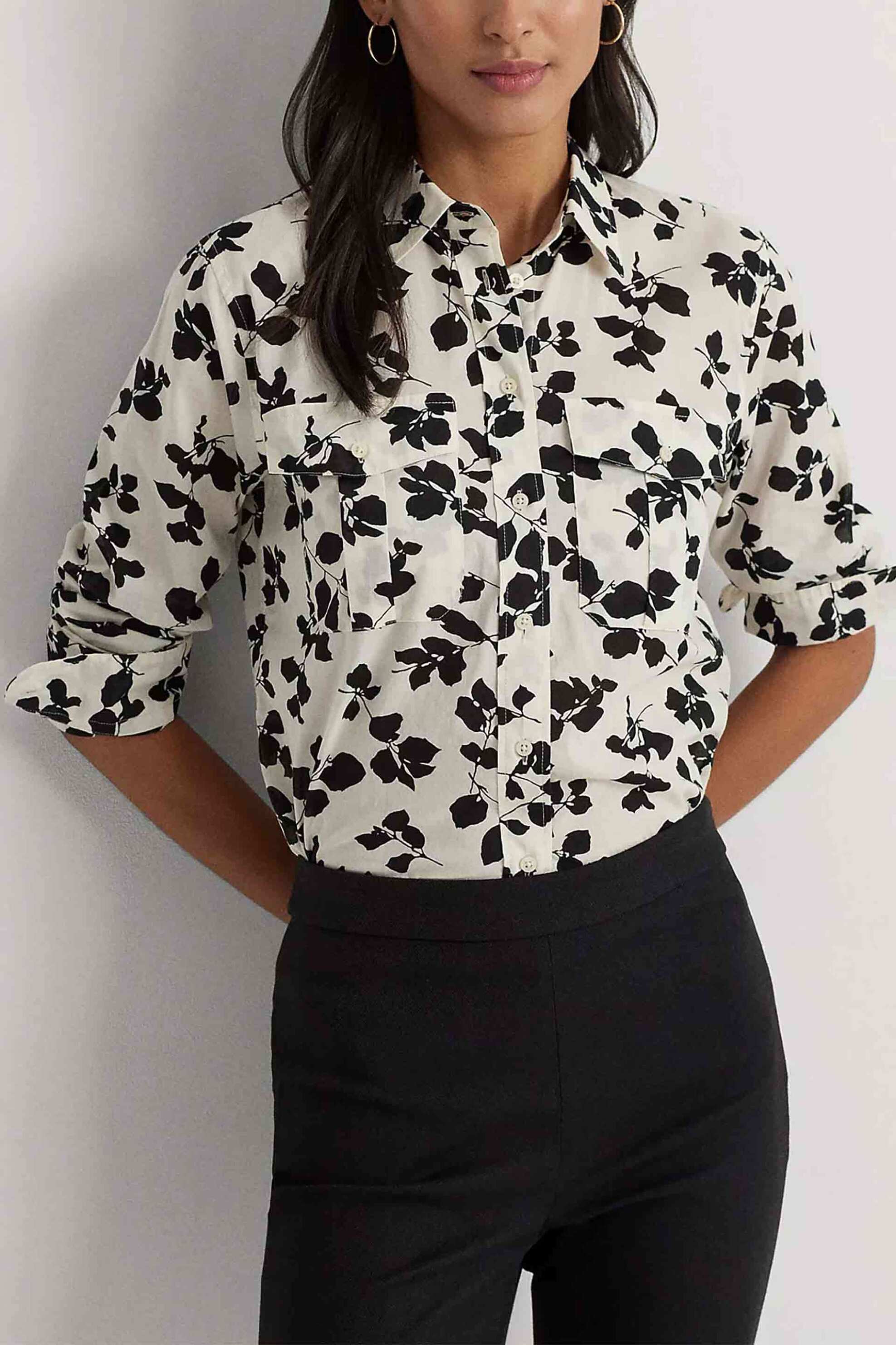 Γυναικείο πουκάμισο. Floral print. Μακρύ μανίκι. Τσέπες στο στήθος. 100% βαμβάκι Το μοντέλο έχει ύψος 178 cm και φοράει μέγεθος S.