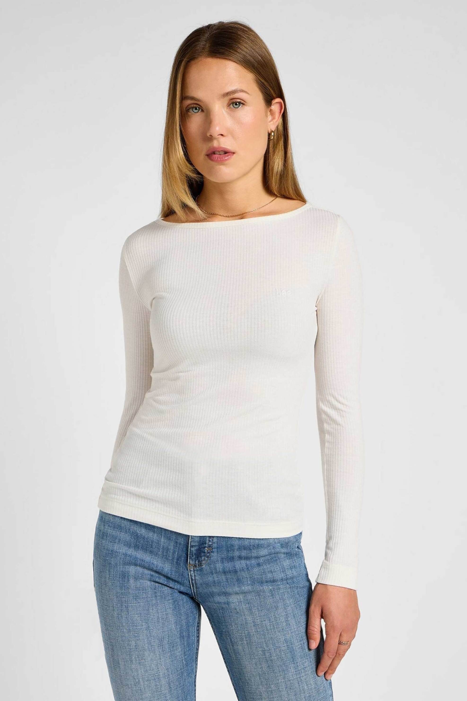 Γυναικεία μπλούζα. Μονόχρωμη. Ribbed ύφανση. Boat λαιμόκοψη. Μακρύ μανίκι. Λογότυπο στο στήθος. Slim fit. 100% βαμβάκι Το μοντέλο έχει ύψος 174 cm και φοράει μέγεθος S. PALALTO LIMITED & ΣΥΝΕΡΓΑΤΕΣ ΜΙΚΕ