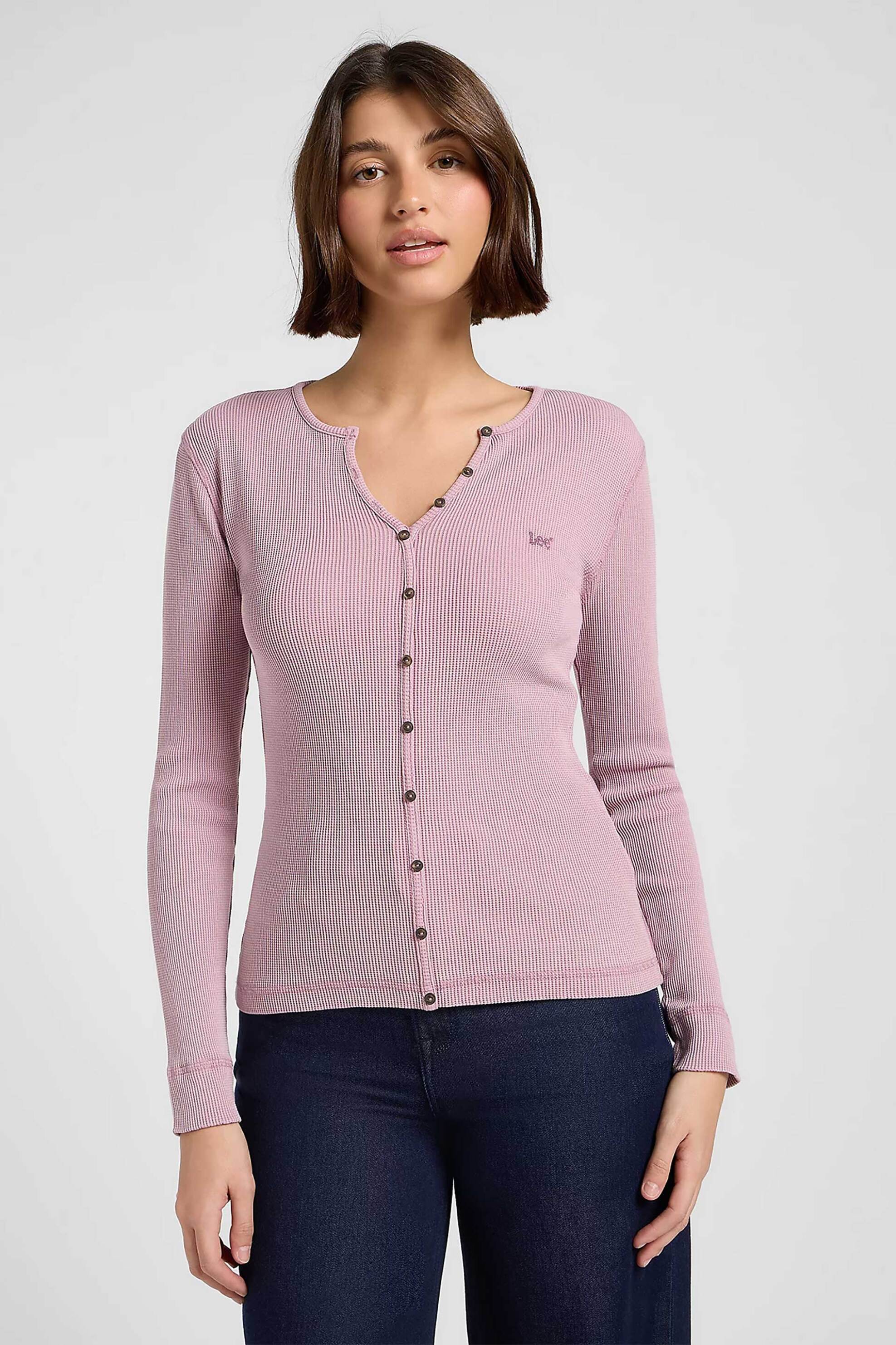 Γυναικείο τοπ. Μονόχρωμο. Waffle pattern. Henley λαιμόκοψη. Κλείσιμο με κουμπιά. Λογότυπο στο στήθος. Μακρύ μανίκι. Slim fit. 100% βαμβάκι Το μοντέλο έχει ύψος 174 cm και φοράει μέγεθος S. PALALTO LIMITED & ΣΥΝΕΡΓΑΤΕΣ ΜΙΚΕ