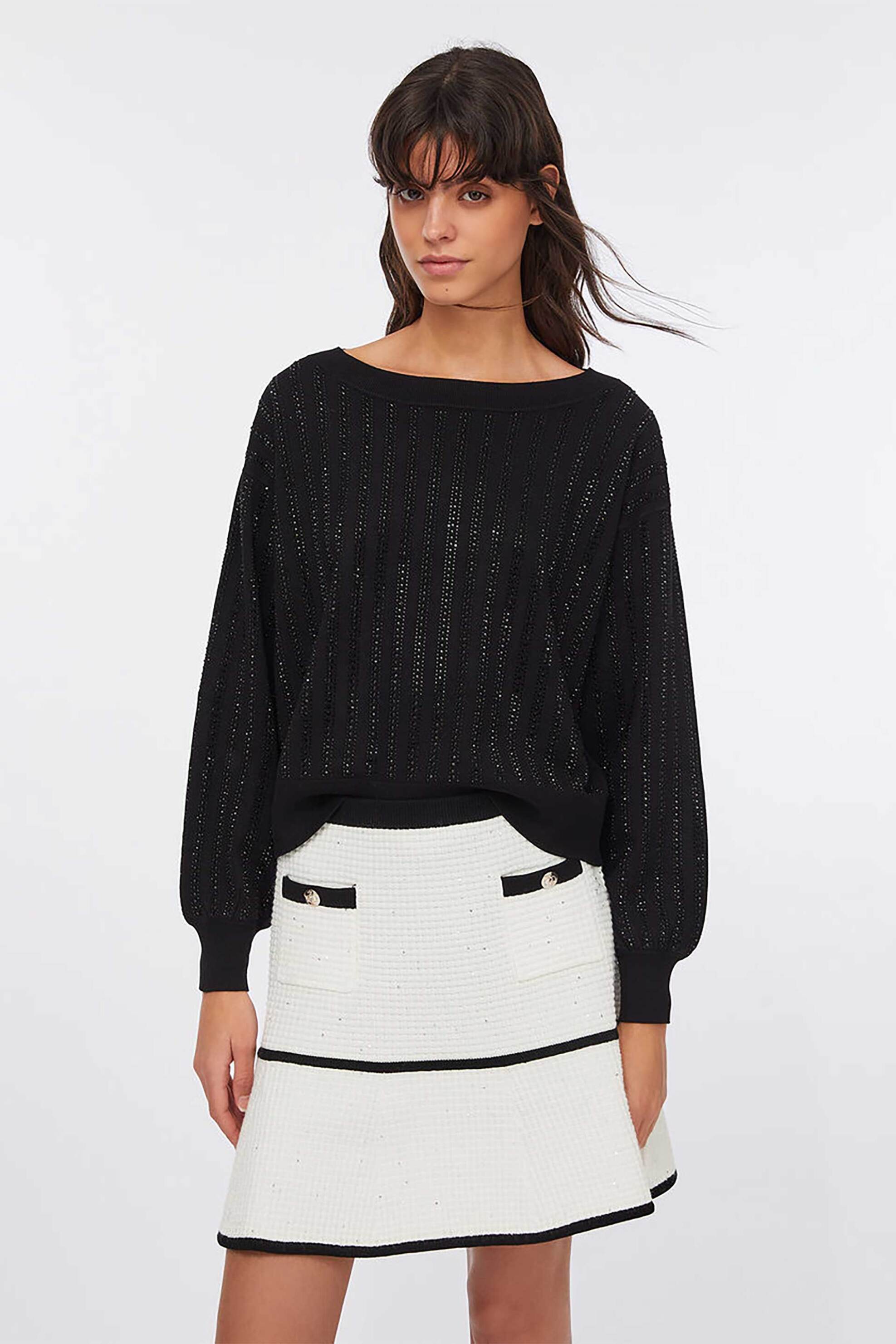 Γυναικεία πλεκτή μπλούζα. Boat λαιμόκοψη. Διακοσμητικά κεντήματα. Μακρύ μανίκι balloon. Προέλευση: ΚΙΝΑ. 62% βισκόζη, 38% polyester Το μοντέλο έχει ύψος 177 cm και φοράει το νούμερο S. SHOP & TRADE AEBE