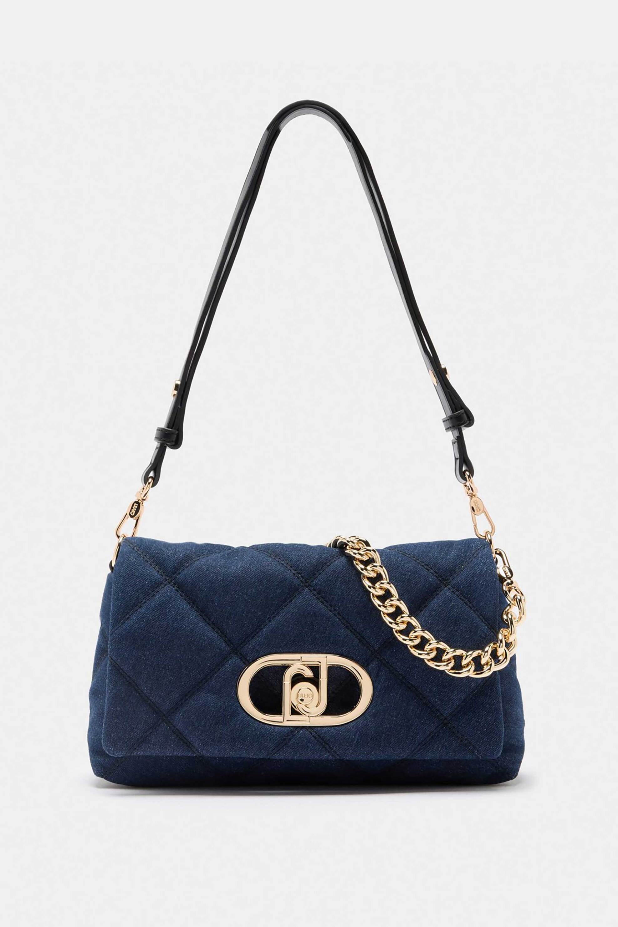 Γυναικεία τσάντα ώμου. Denim. Καπιτονέ. Flap κλείσιμο με μαγνητικό κούμπι. Αλυσίδα ώμου. Λουράκι ώμου. Μεταλλικό λογότυπο μπροστά. Διαστάσεις: 28 x 8 x 16 cm. Προέλευση: ΜΥΑΝΜΑΡ. 70% βαμβάκι, 30% polyester SHOP & TRADE AEBE