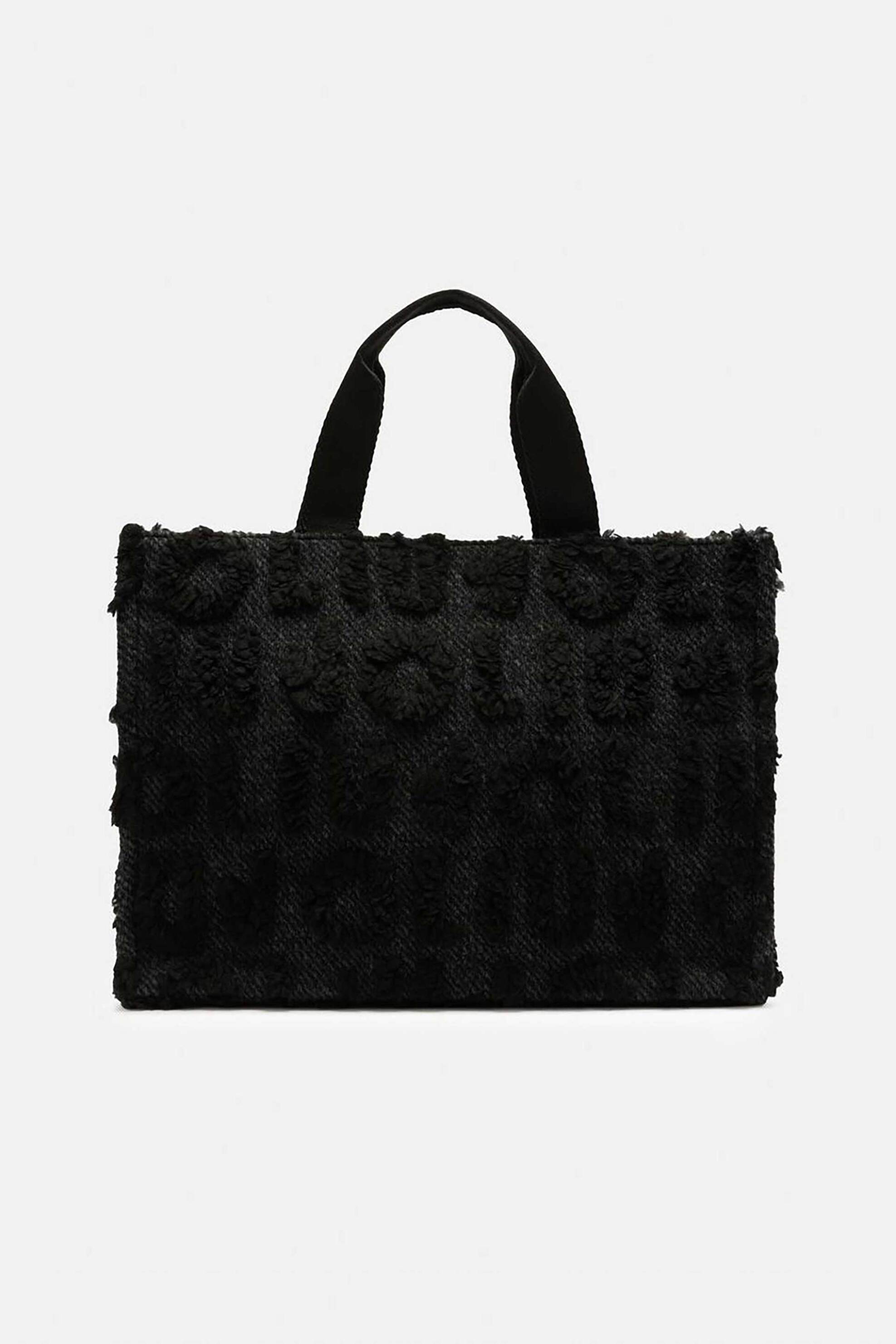 Γυναικεία τσάντα ώμου. Κλείσιμο με φερμουάρ. Διπλή λαβή. Μακρύ λουράκι ώμου αφαιρούμενο. Εσωτερική τσέπη με φερμουάρ. Ανάγλυφο teddy logo. Διαστάσεις: 40 x 30 x 20 cm. Προέλευση: Κίνα. 70% polyester, 30% μαλλί SHOP & TRADE AEBE