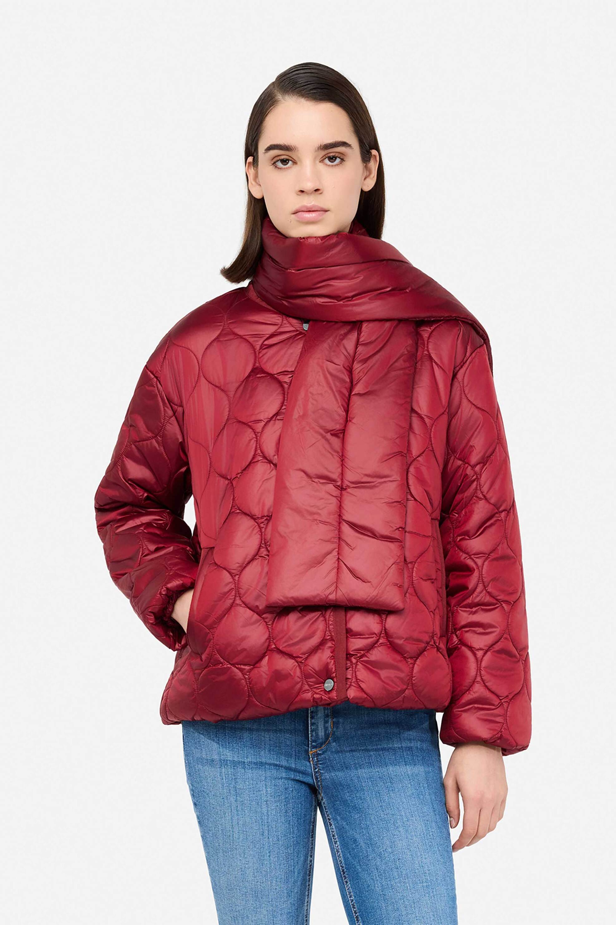 Γυναικείο μπουφάν. Καπιτονέ. Κλείσιμο με κουμπιά. Μακρύ μανίκι. Τσέπες στο πλάι. Κασκόλ καπιτονέ. Προέλευση: ΚΙΝΑ. 100% polyamide Το μοντέλο έχει ύψος 180 cm και φοράει το νούμερο 40. SHOP & TRADE AEBE