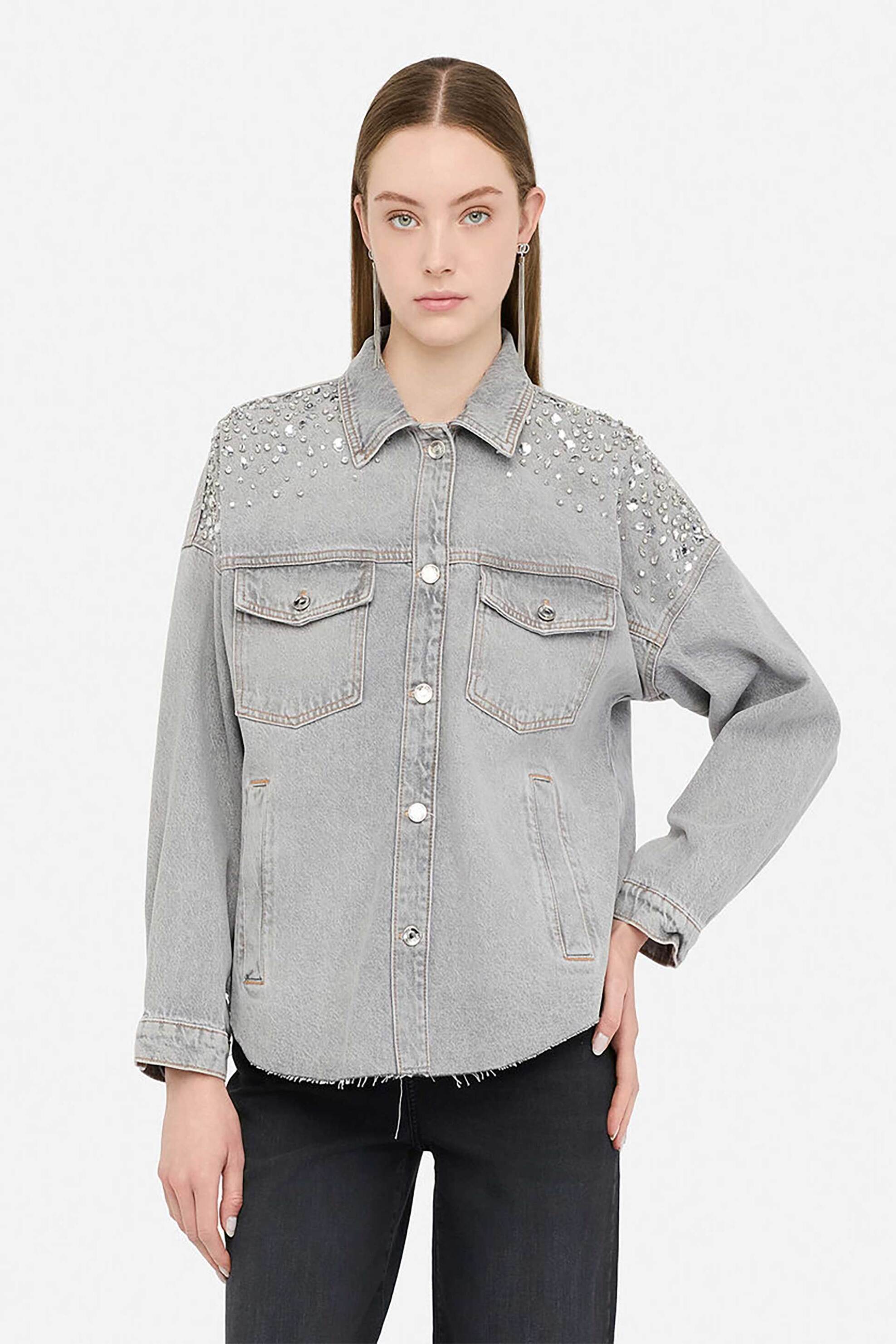 Γυναικείο τζιν jacket. Σχέδιο με κέντημα all-over. Mακρύ μανίκι. Τσέπες στο στήθος. All-over κέντημα. Προέλευση: ΤΟΥΡΚΙΑ. 100% βαμβάκι Το μοντέλο έχει ύψος 178 cm και φοράει το νούμερο S. SHOP & TRADE AEBE