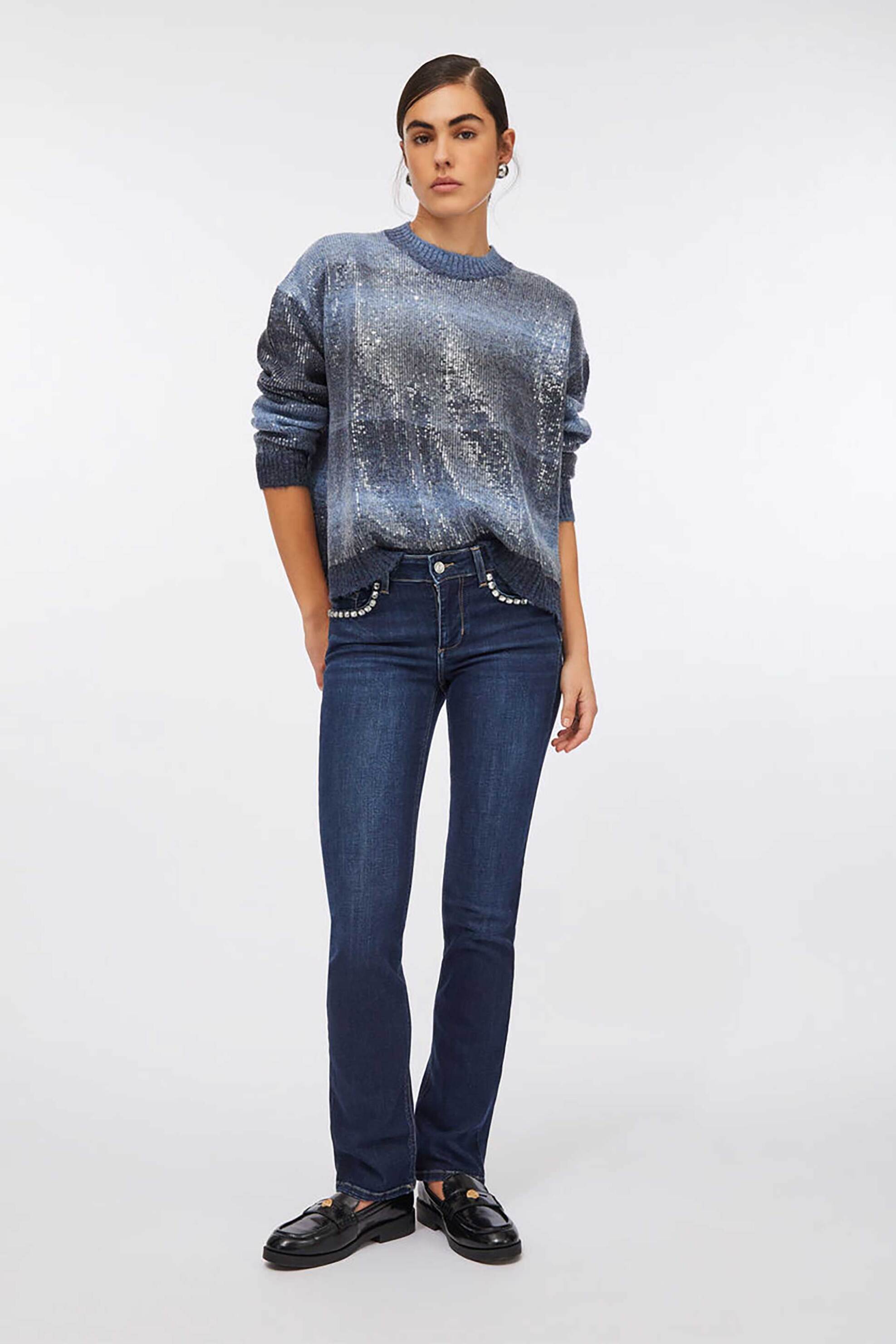 Γυναικείο τζιν παντελόνι. Μονόχρωμο. Κλείσιμο με φερμουάρ και κουμπί. Ψηλόμεσο. Θηλιές για ζώνη. Πεντάτσεπο. Διακοσμητικές πέτρες. Skinny fit. Προέλευση: ΑΙΓΥΠΤΟΣ. 82% βαμβάκι, 16% polyester, 2% elastane Το μοντέλο έχει ύψος 181 cm και φοράει το νούμερο 27. SHOP & TRADE AEBE