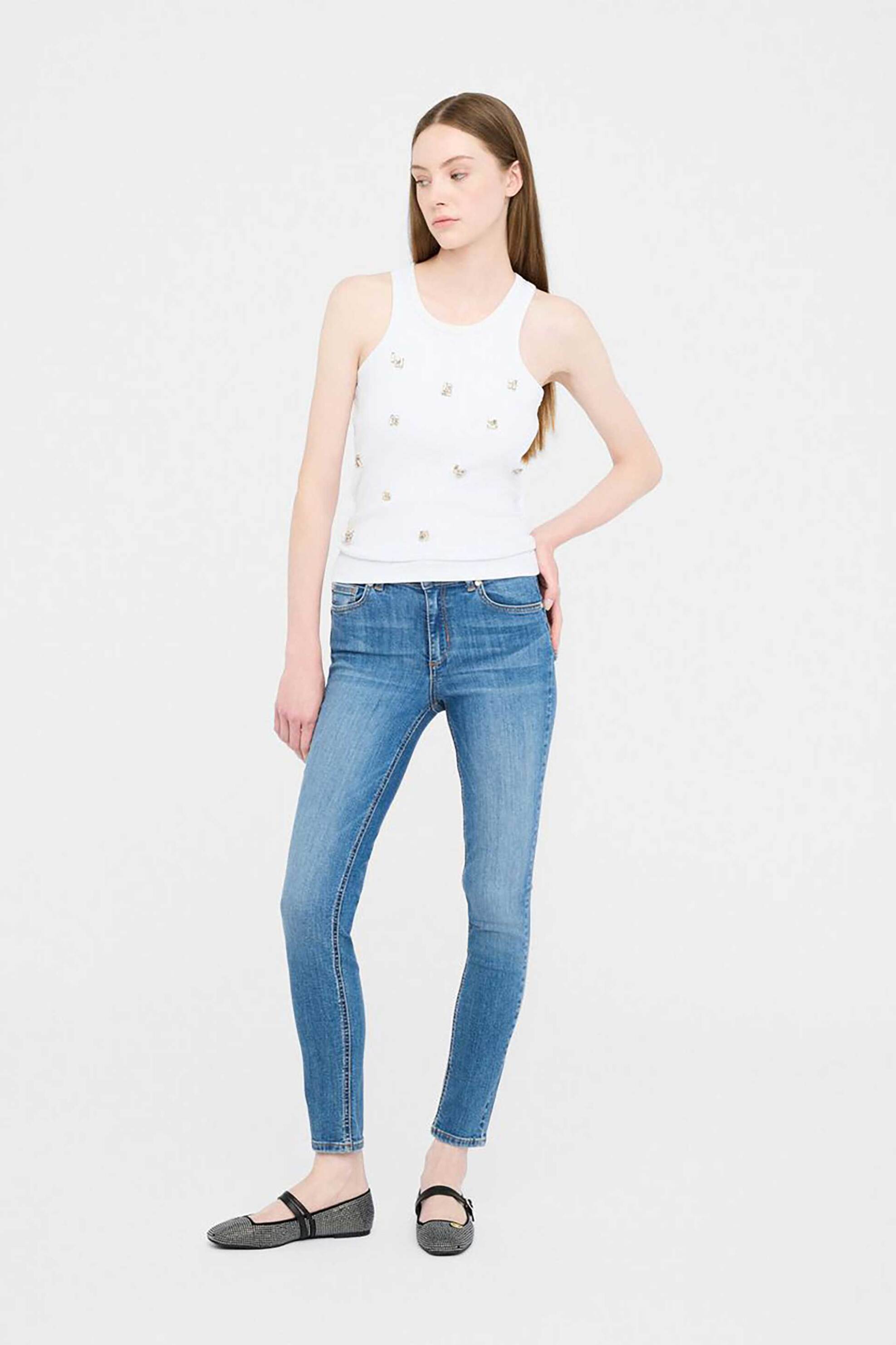 Γυναικείο τζιν παντελόνι. Μονόχρωμο. Κλείσιμο με φερμουάρ και κουμπί. Ψηλόμεσο. Θηλιές για ζώνη. Πεντάτσεπο. Skinny fit. Προέλευση: ΑΙΓΥΠΤΟΣ. 98% βαμβάκι, 2% elastane Το μοντέλο έχει ύψος 178 cm και φοράει το νούμερο 27. SHOP & TRADE AEBE
