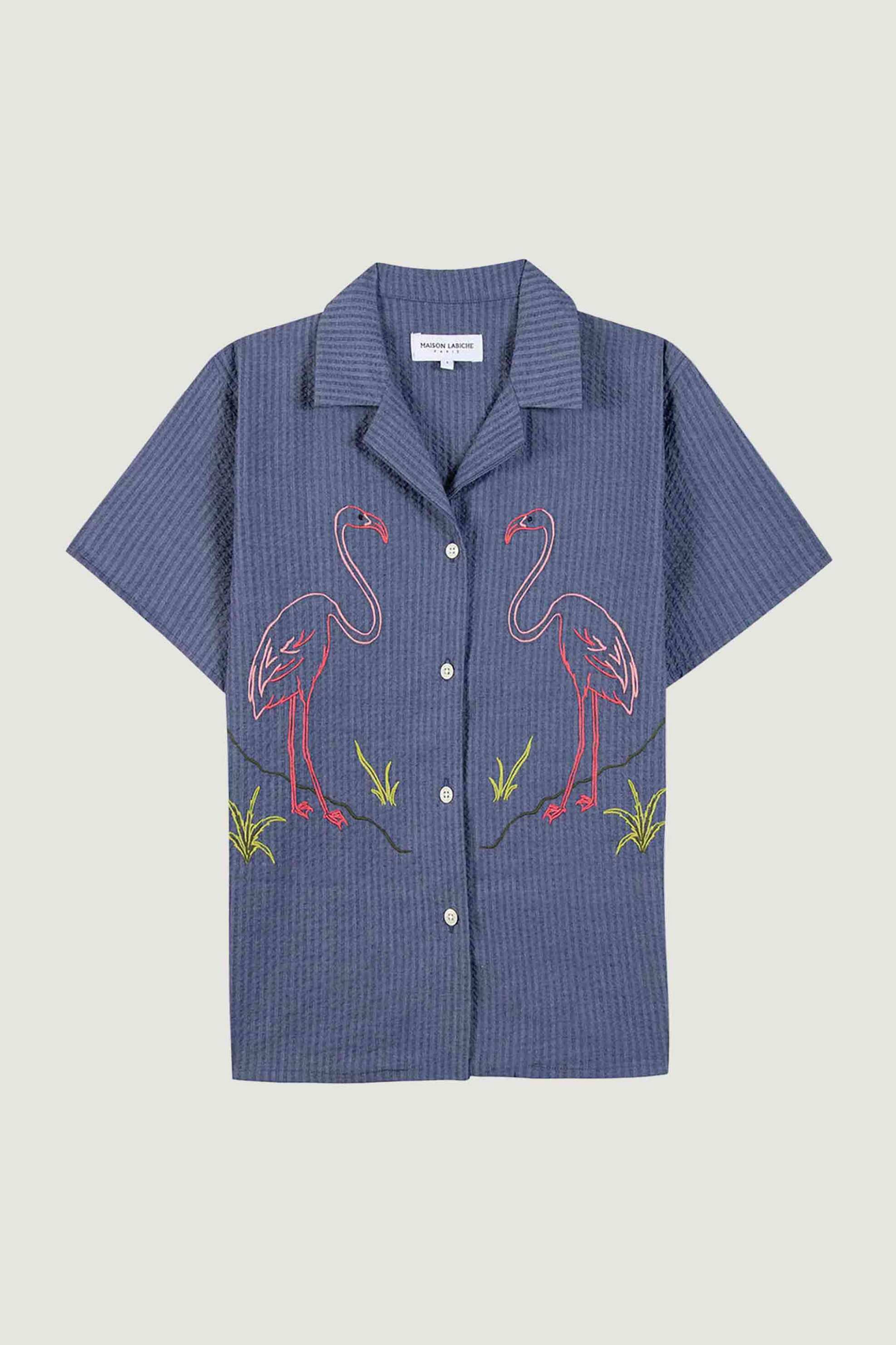 Γυναικείο πουκάμισο. Print στο μπροστινό μέρος. Κλασικός γιακάς. Κλείσιμο με κουμπιά. Κοντό μανίκι. Προέλευση: PT. 100% βαμβάκι SAS MLB