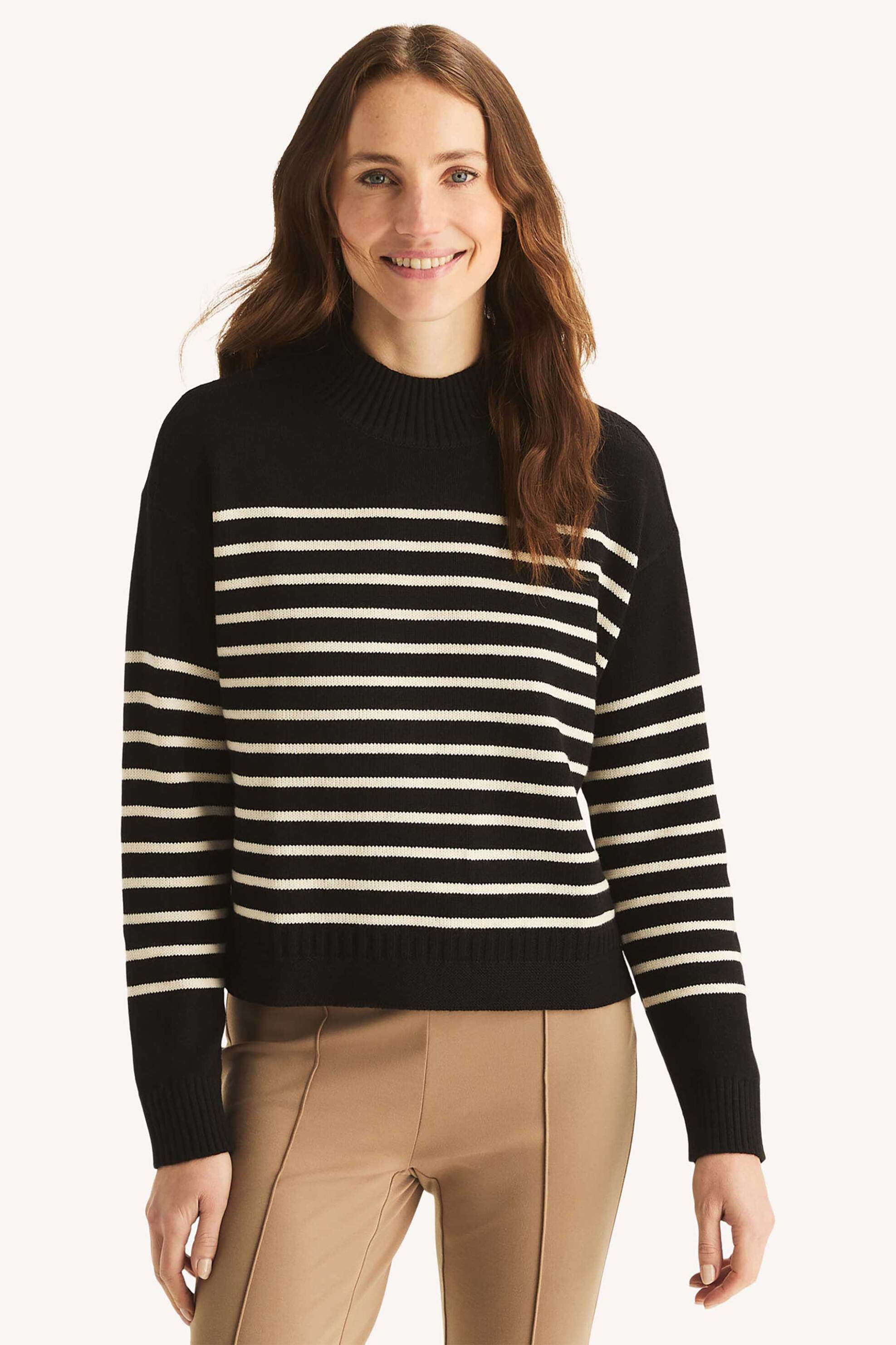 Γυναικείο πουλόβερ. Ριγέ σχέδιο. Ψηλός λαιμός. Ribbed τελειώματα. Classic fit. 60% βαμβάκι, 40% acrylic Για επικοινωνία με τον Υπεύθυνο Διανομέα στην Ελλάδα: NOTOS COM ΣΥΜΜΕΤΟΧΕΣ ΑΕΒΕ , Καλυφτάκη 5, Κηφισιά 14564 https://www.notoscom.gr/
