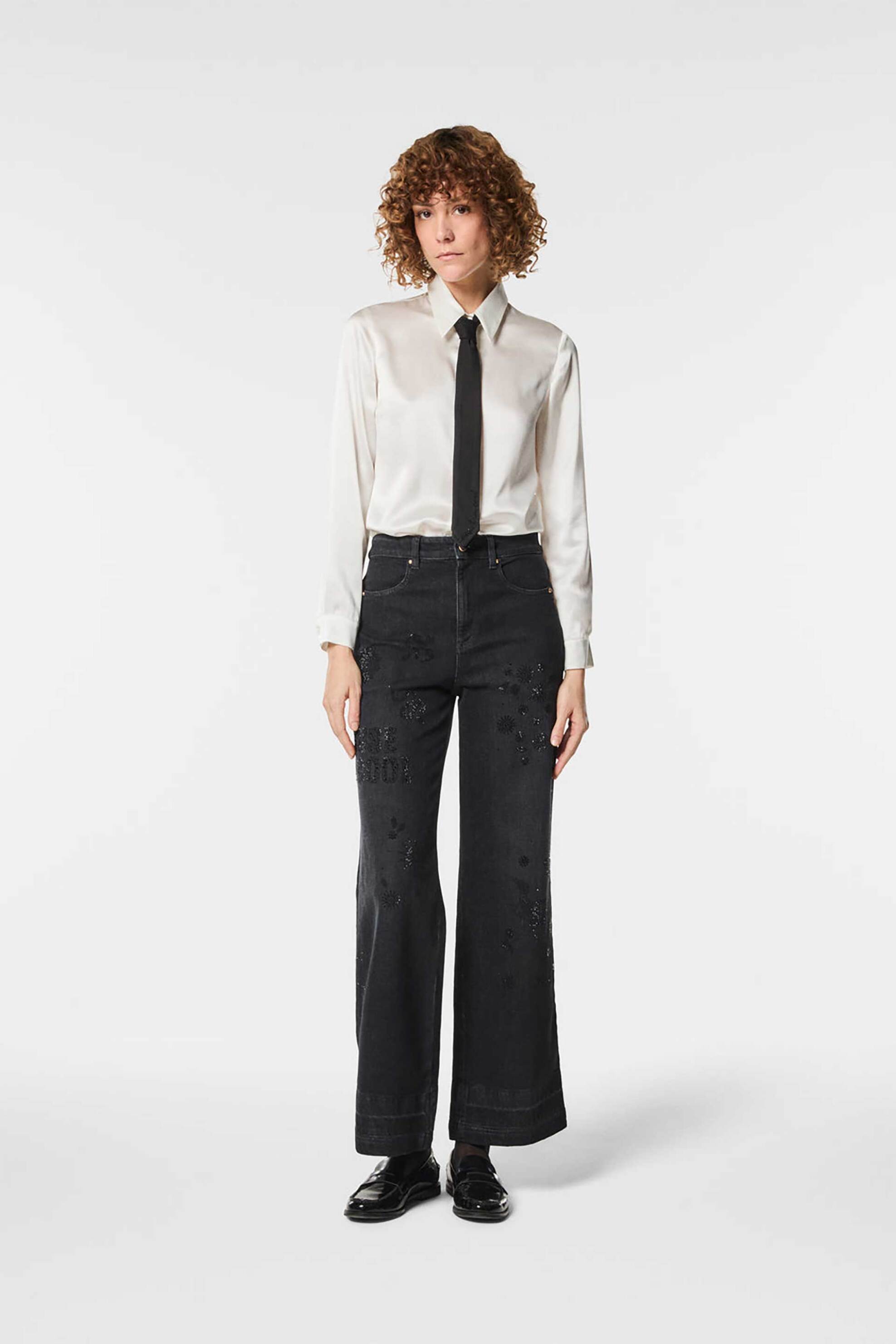 Γυναικείο τζιν παντελόνι. Στρας. Tσέπες στο μπροστά και στο πίσω μέρος. Κλείσιμο με κουμπί και φερμουάρ. Logo patch. Regular fit. Προέλευση: CN. 98% βαμβάκι, 2% elastane SALT WATER Α.Ε.