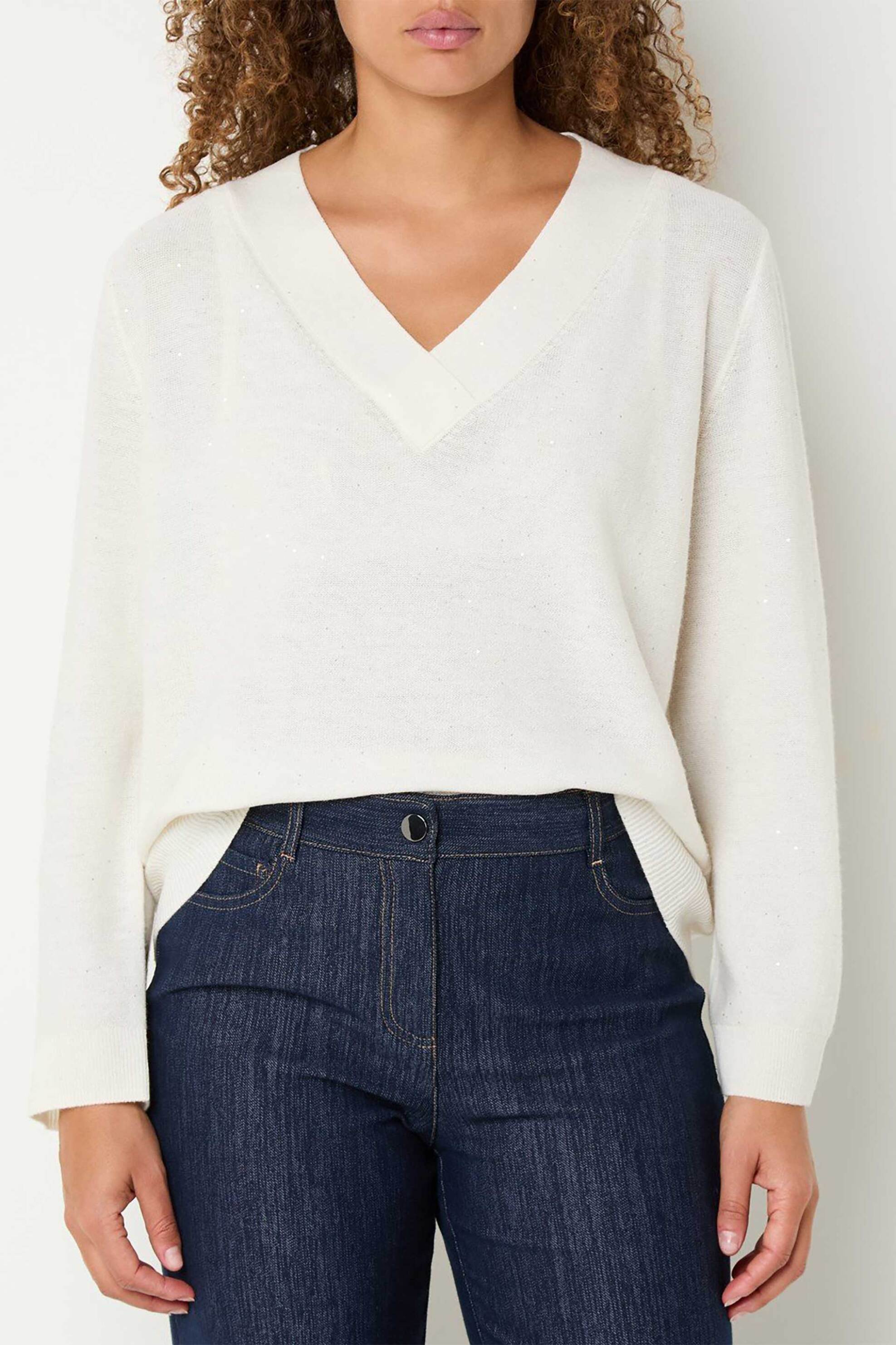 Γυναικεία μπλούζα πλεκτή. V λαιμόκοψη. Μακρύ μανίκι. Μονόχρωμη. 92% μαλλί, 6% polyamide, 2% metallic thread SPORT & FASHION FREEDOM A.E.