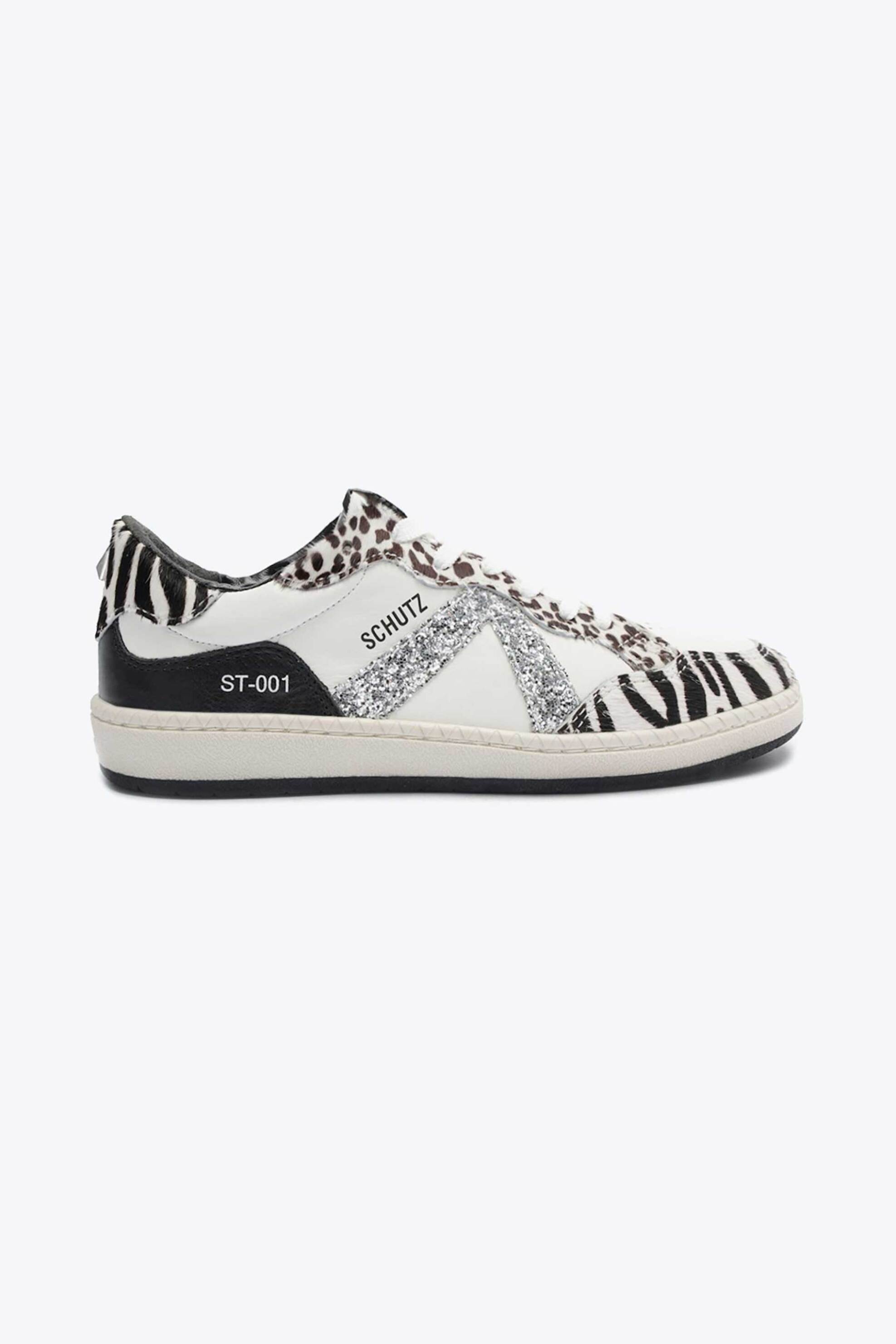 Γυναικεία sneakers. Zebra print. Glitter λεπτομέρειες στο πλάι. Δέσιμο με κορδόνια. Ύψος σόλας: 3 cm. Δέρμα
