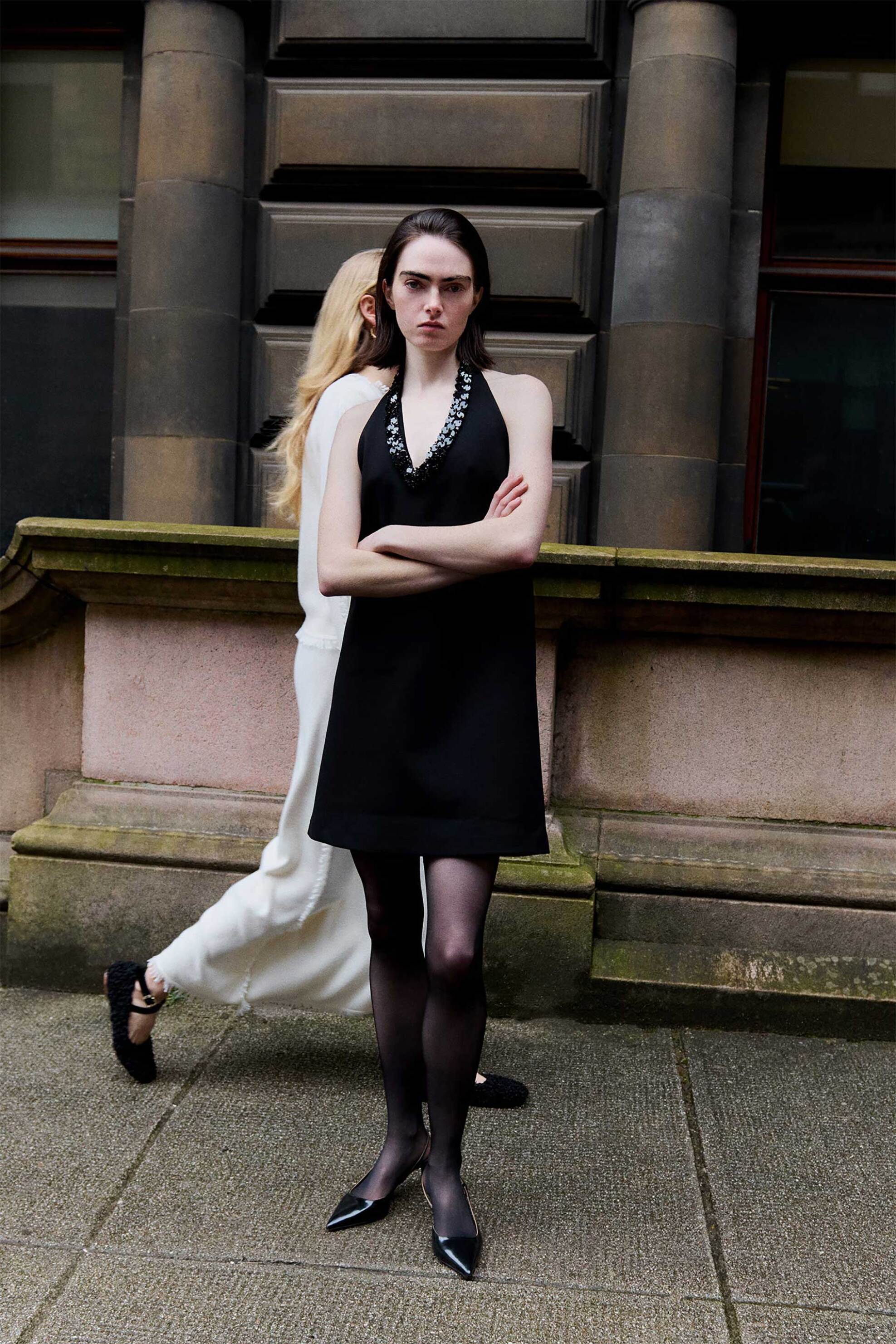 Γυναικείο mini φόρεμα. V λαιμόκοψη με διακοσμητικές παγιέτες. Ανοιχτή πλάτη. Regular fit. 67% βισκόζη, 28% polyamide, 5% elastane