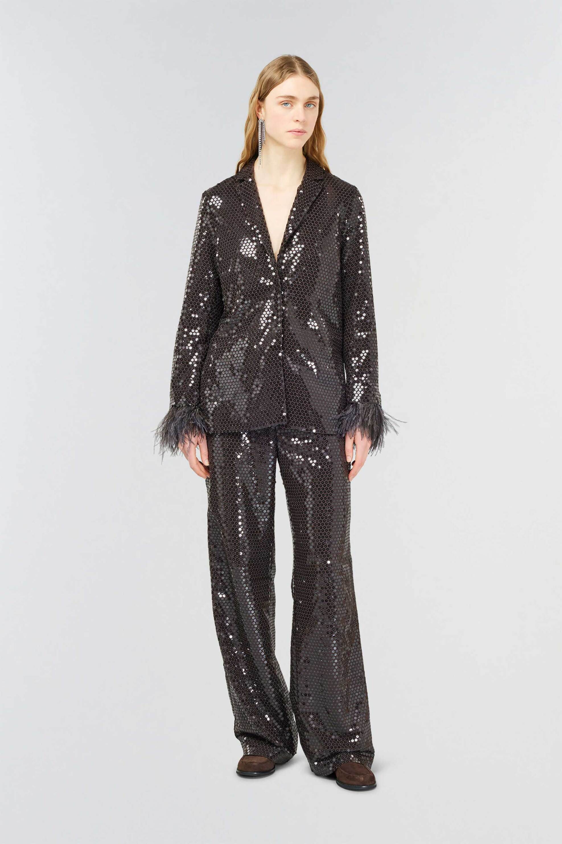 Γυναικείο παντελόνι. All-over παγιέτα. Κλείσιμο φερμουάρ στο πλάι. Τσέπες. Wide leg fit. 100% polyester