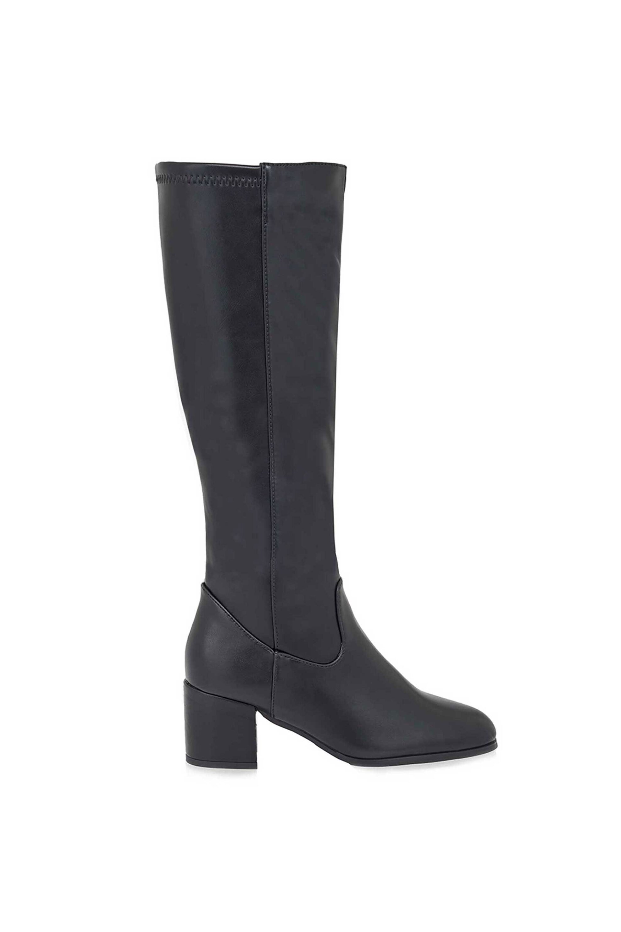 Γυναικείες μπότες. Μονόχρωμες. Κλείσιμο με φερμουάρ. Χοντρό τακούνι. Ύψος τακουνιού: 6 cm. Περιφέρεια γάμπας: 30 cm. Συνθετικό ΤΣΑΚΙΡΗΣ ΜΑΛΛΑΣ ΑΕ