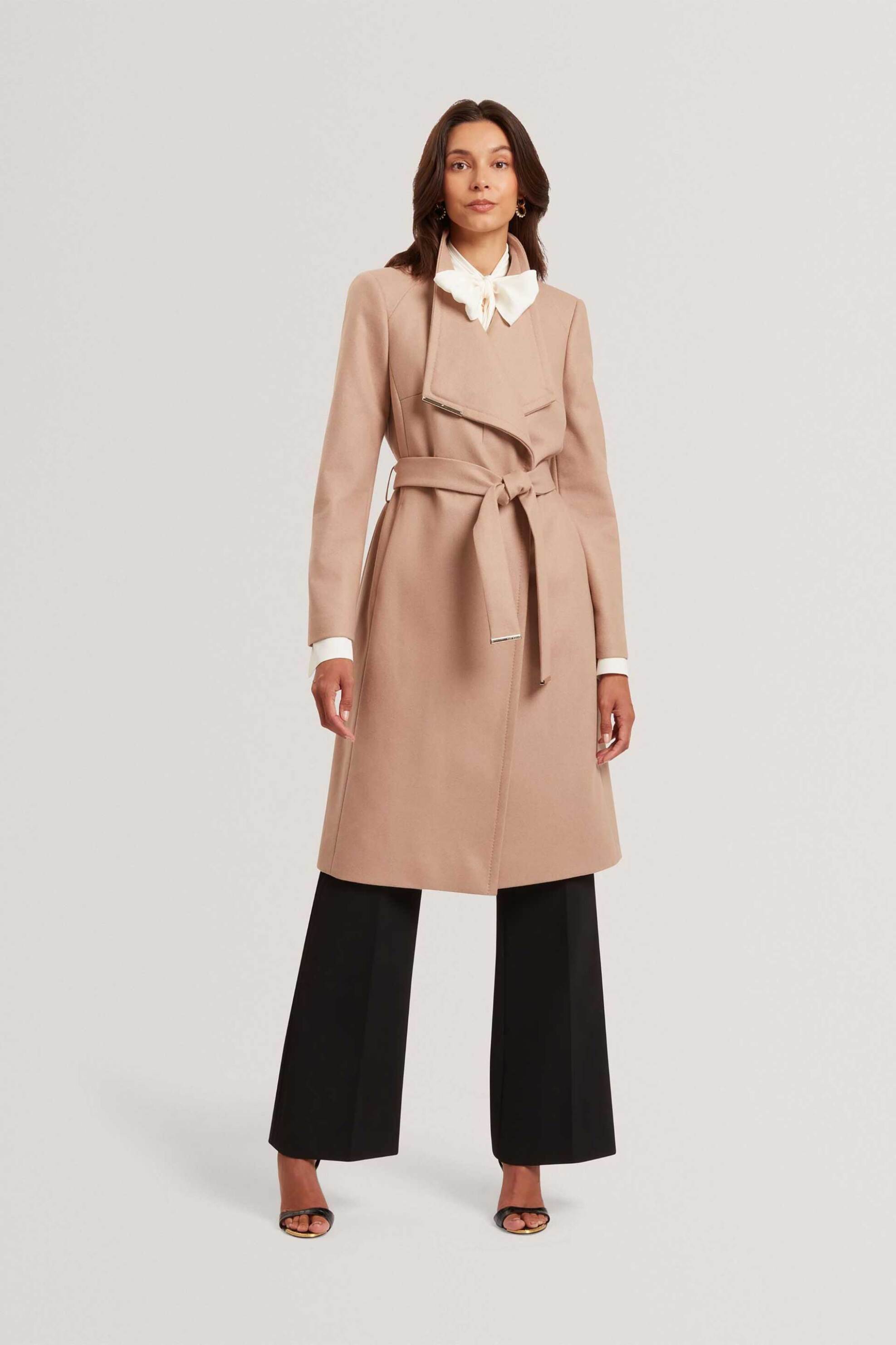 Γυναικείο midi παλτό. Ζώνη στη μέση. Μακρύ μανίκι. Μεγάλος γιακάς με μεταλλική λεπτομέρεια. Τσέπες στο πλάι. Προέλευση: Ρουμανία. 69% μαλλί, 25% polyamide, 6% κασμίρι Το μοντέλο έχει ύψος 177 cm και φοράει νούμερο 36. SPORT & FASHION FREEDOM A.E.