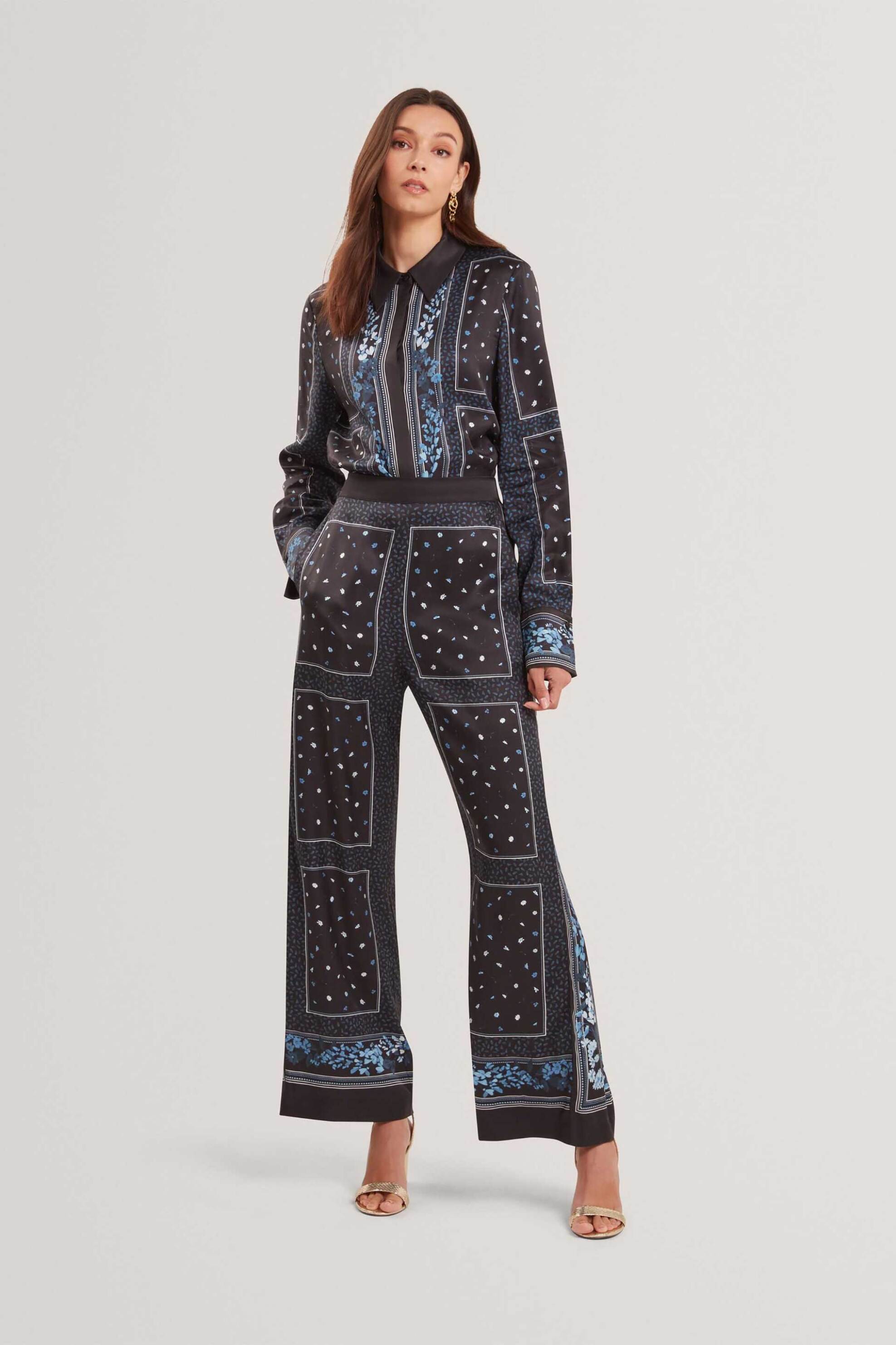 Γυναικείο παντελόνι. Ψηλόμεσο. Κλείσιμο με φερμουάρ. Τσέπες στο πλάι. Wide leg. Scarf print. Προέλευση: Κίνα. 100% βισκόζη Το μοντέλο έχει ύψος 179 cm και φοράει νούμερο 36. SPORT & FASHION FREEDOM A.E.
