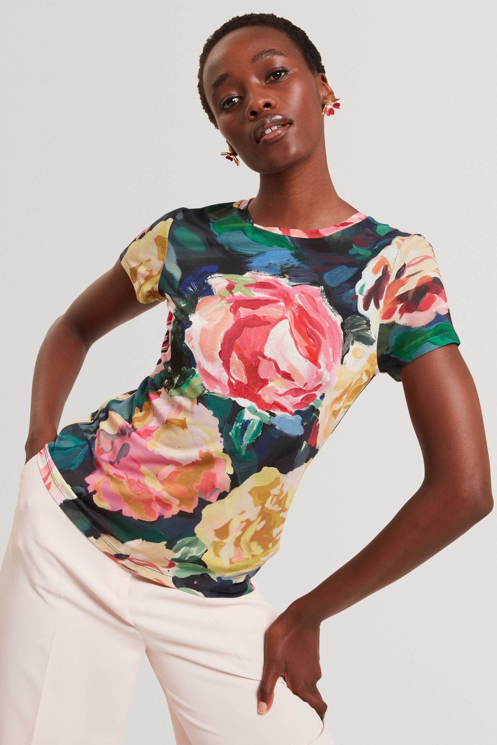 Γυναικείο t-shirt. Στρογγυλή λαιμόκοψη. Floral print. Προέλευση: Τουρκία 95% βισκόζη, 5% elastane SPORT & FASHION FREEDOM A.E.