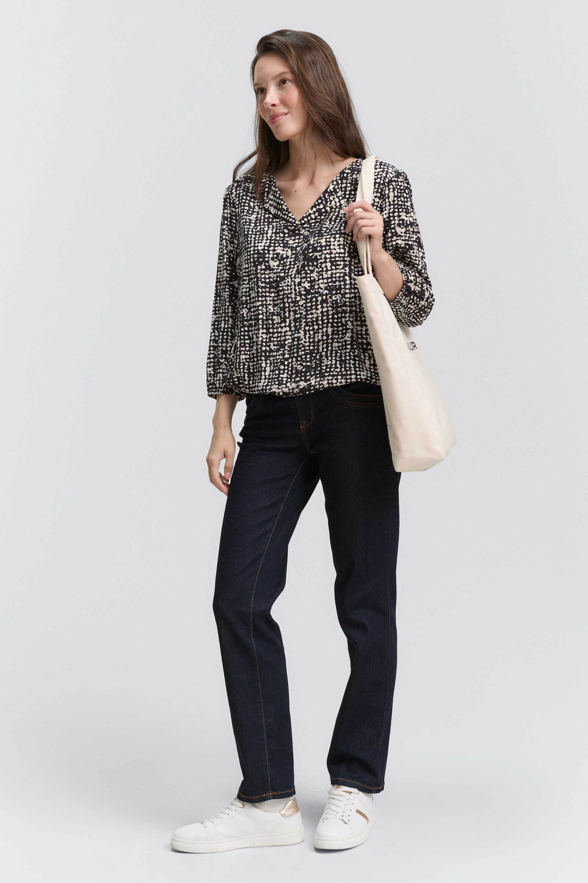 Γυναικεία μπλούζα. All-over print. V λαιμόκοψη. Μανίκι 3/4. Πατιλέτα με κουμπιά. Regular fit. Προέλευση: Ινδονησία. 100% βισκόζη SHOP & TRADE AEBE
