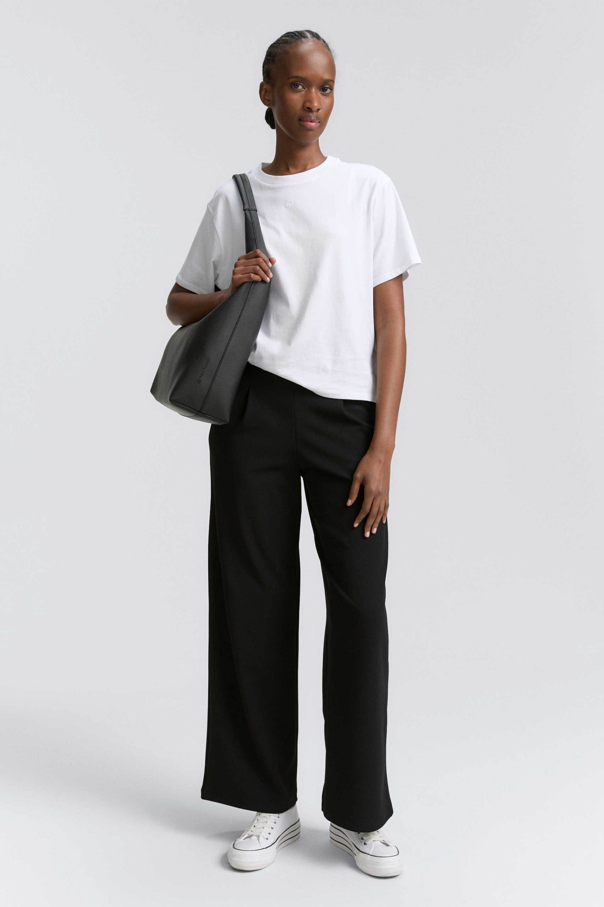 Γυναικείο παντελόνι. Μονόχρωμο. Ελστική μέση με κορδόνι. Τσέπες στο πλάι. Wide leg. Προέλευση: Μπαγκλαντές. 96% polyester, 4% elastane SHOP & TRADE AEBE