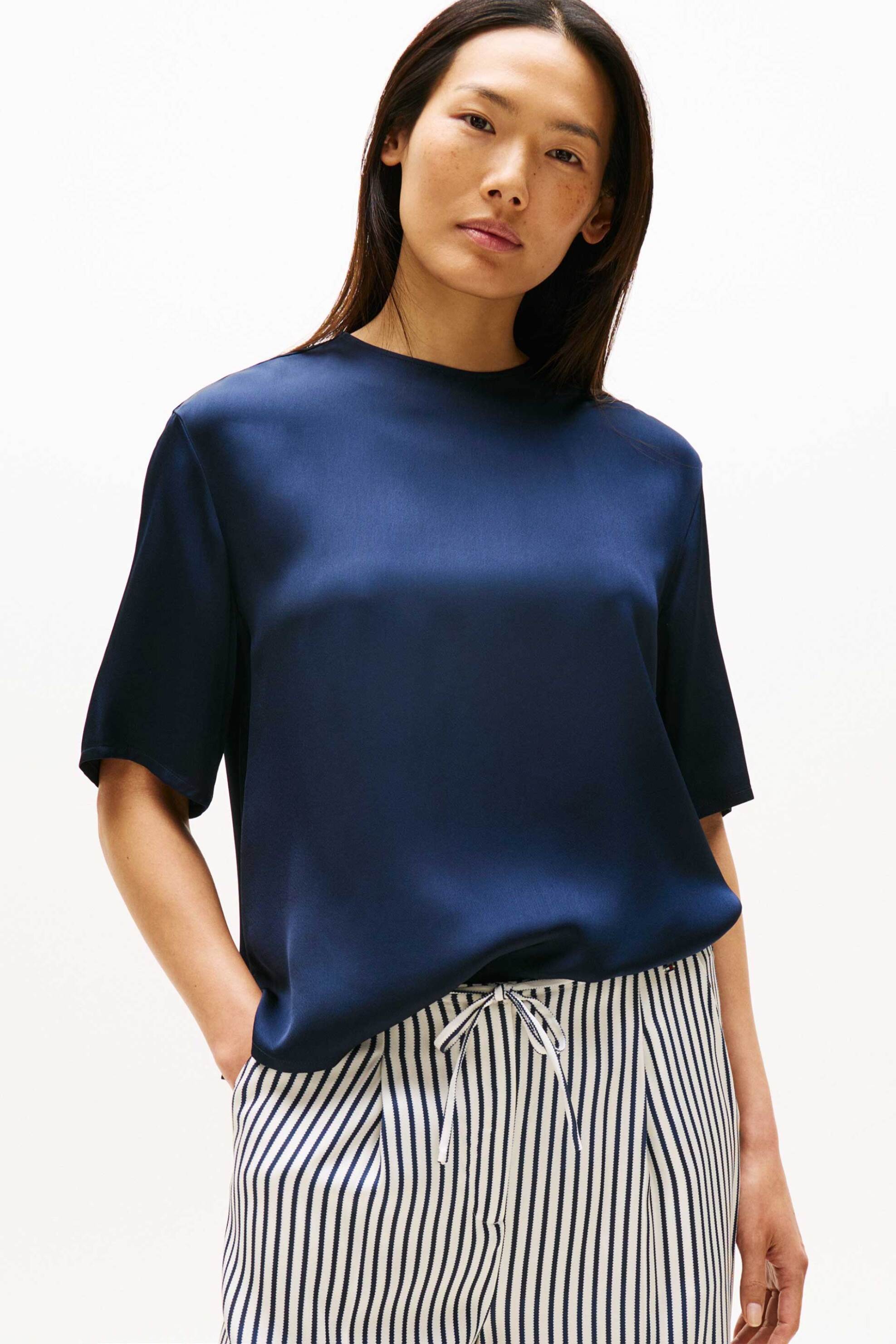 Γυναικείο T-shirt. Μονόχρωμο. Στρογγυλή λαιμόκοψη. Σατέν υφή. Relaxed fit. Προέλευση: KH 100% βισκόζη SARKK ΑΕ