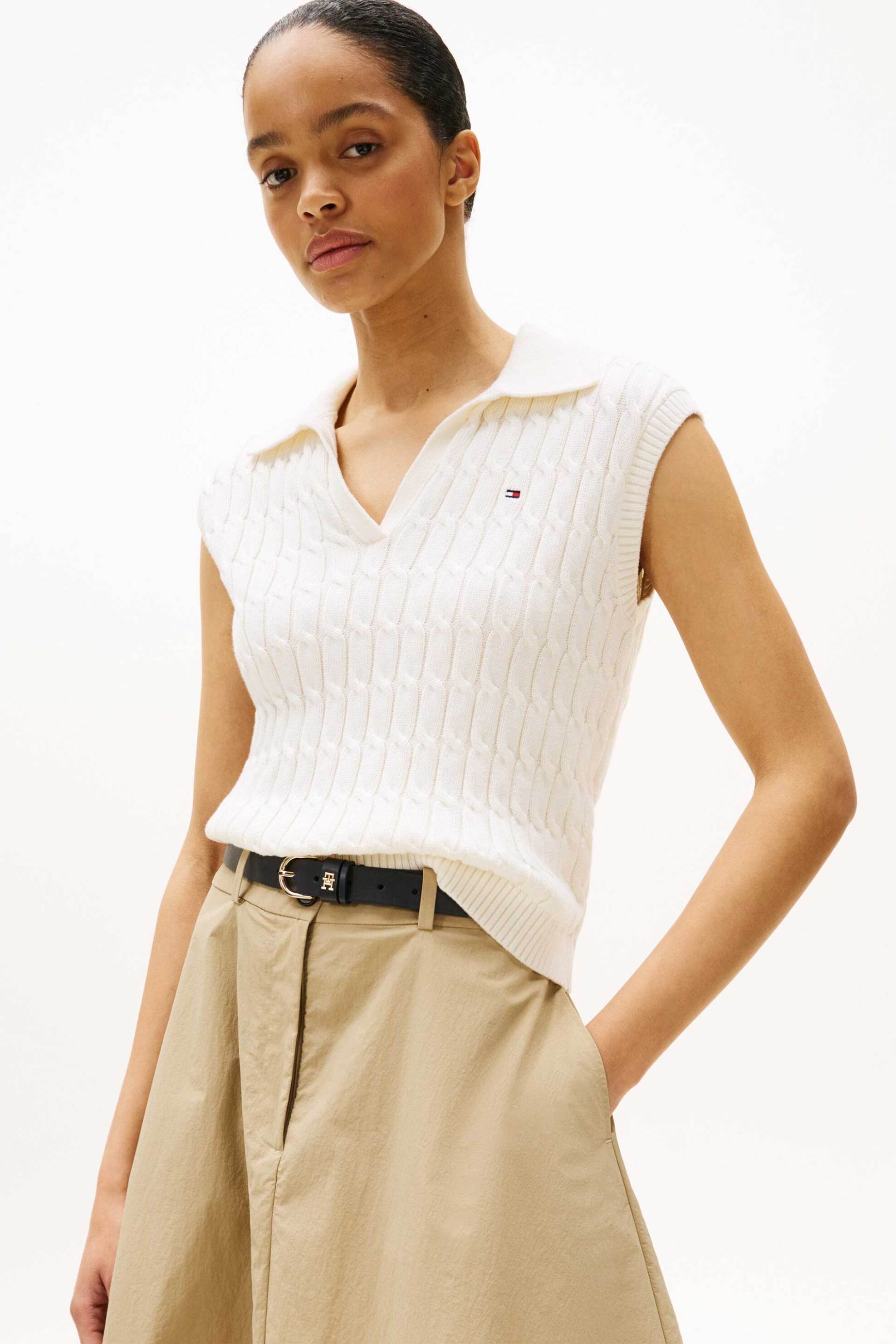 Γυναικεία πλεκτή μπλούζα πόλο. Μονόχρωμη. V λαιμόκοψη. Αμάνικη. Regular fit. Προέλευση: CN. 100% βαμβάκι SARKK ΑΕ