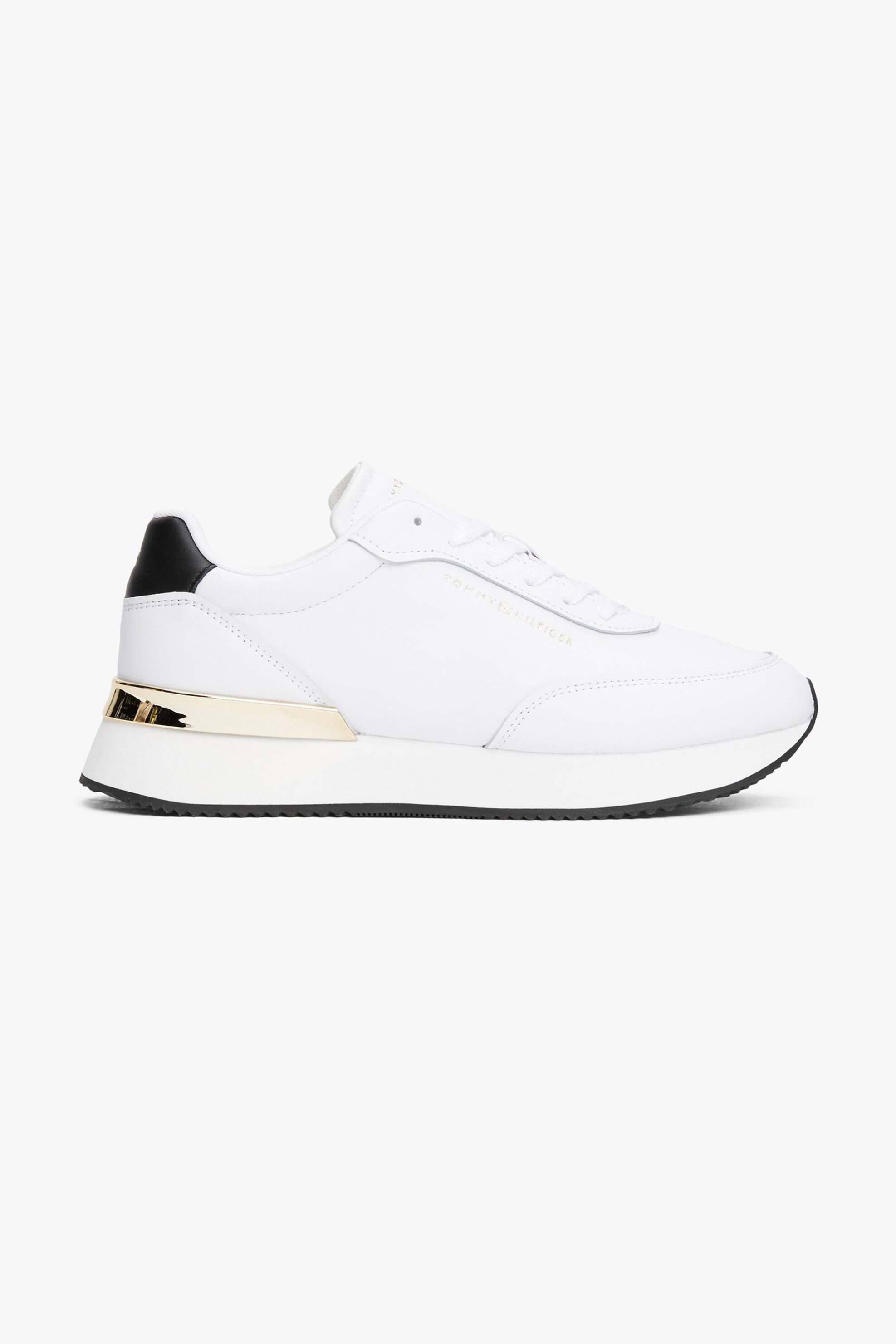Γυναικεία sneakers. Δέσιμο με κορδόνια. Μεταλλικό λογότυπο ανάγλυφο στο πλάι και στη γλώσσα. Μεταλλική σημαία στη φτέρνα. Χρυσή λεπτομέρεια στο πίσω μέρος. Προέλευση: CN. 100% δέρμα SARKK ΑΕ